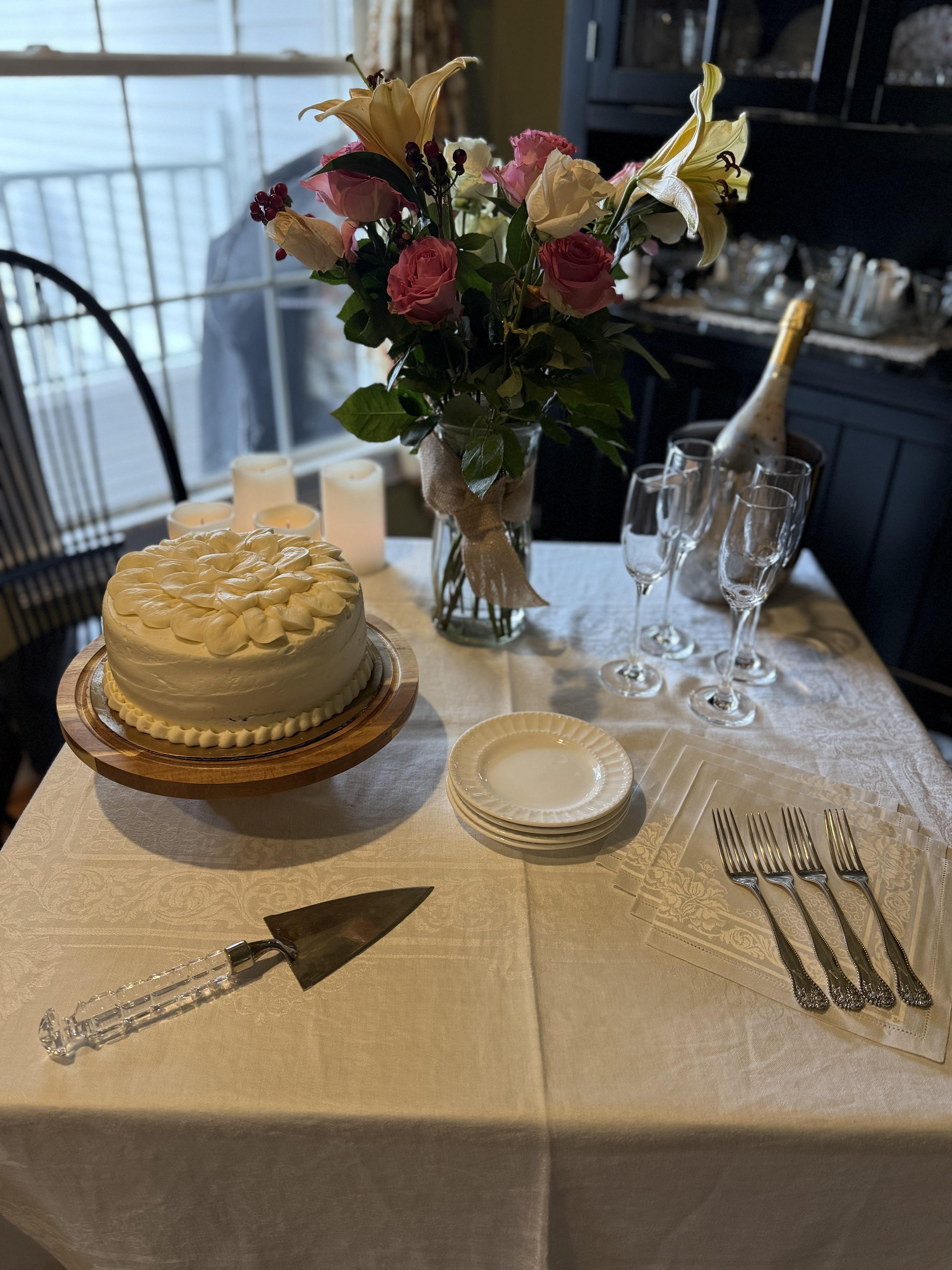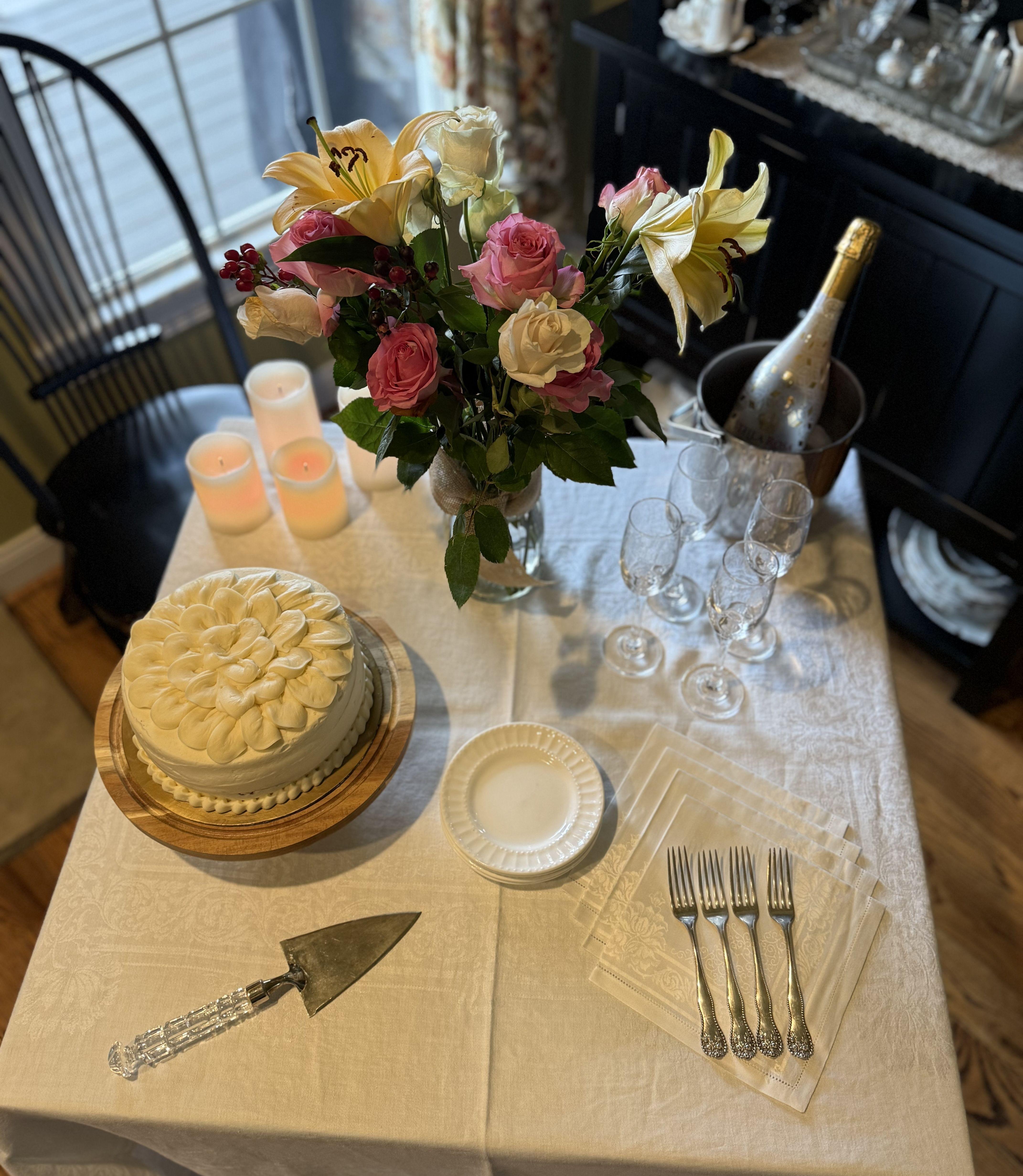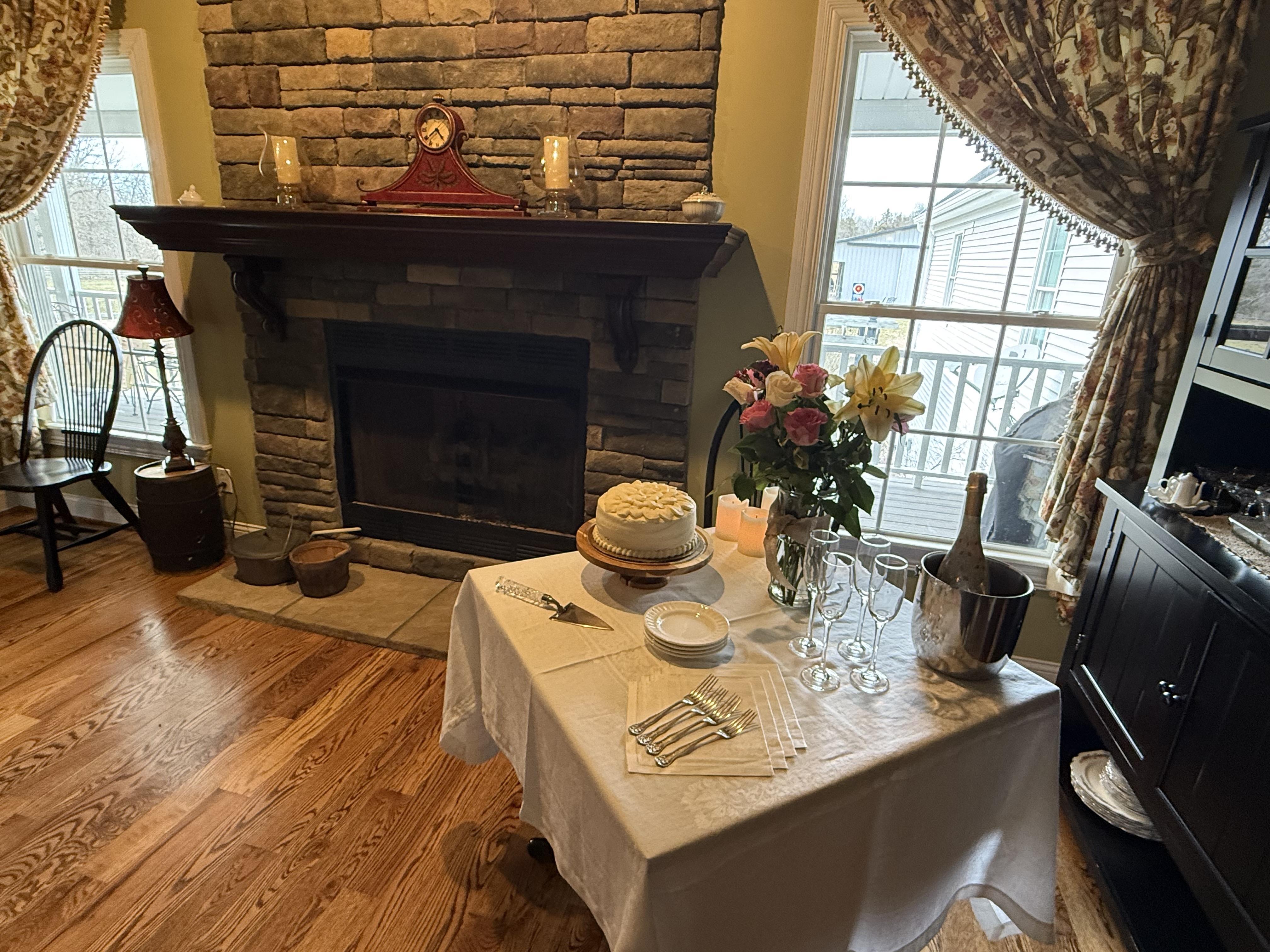 Celebrate your love with a romantic escape. Includes a one-night stay in a luxurious Suite with access to all guest amenities: gourmet breakfast, jacuzzi, fire pit lounge, 1920s Theater, and our speakeasy. Enjoy a delightful cake and Champagne reception for the couple and witnesses, complete with linens, candles, and flowers. Choose your ceremony setting – garden, veranda, pasture/barn, or indoor fireplace (4-8 pm on your overnight stay). Officiant arranged separately.