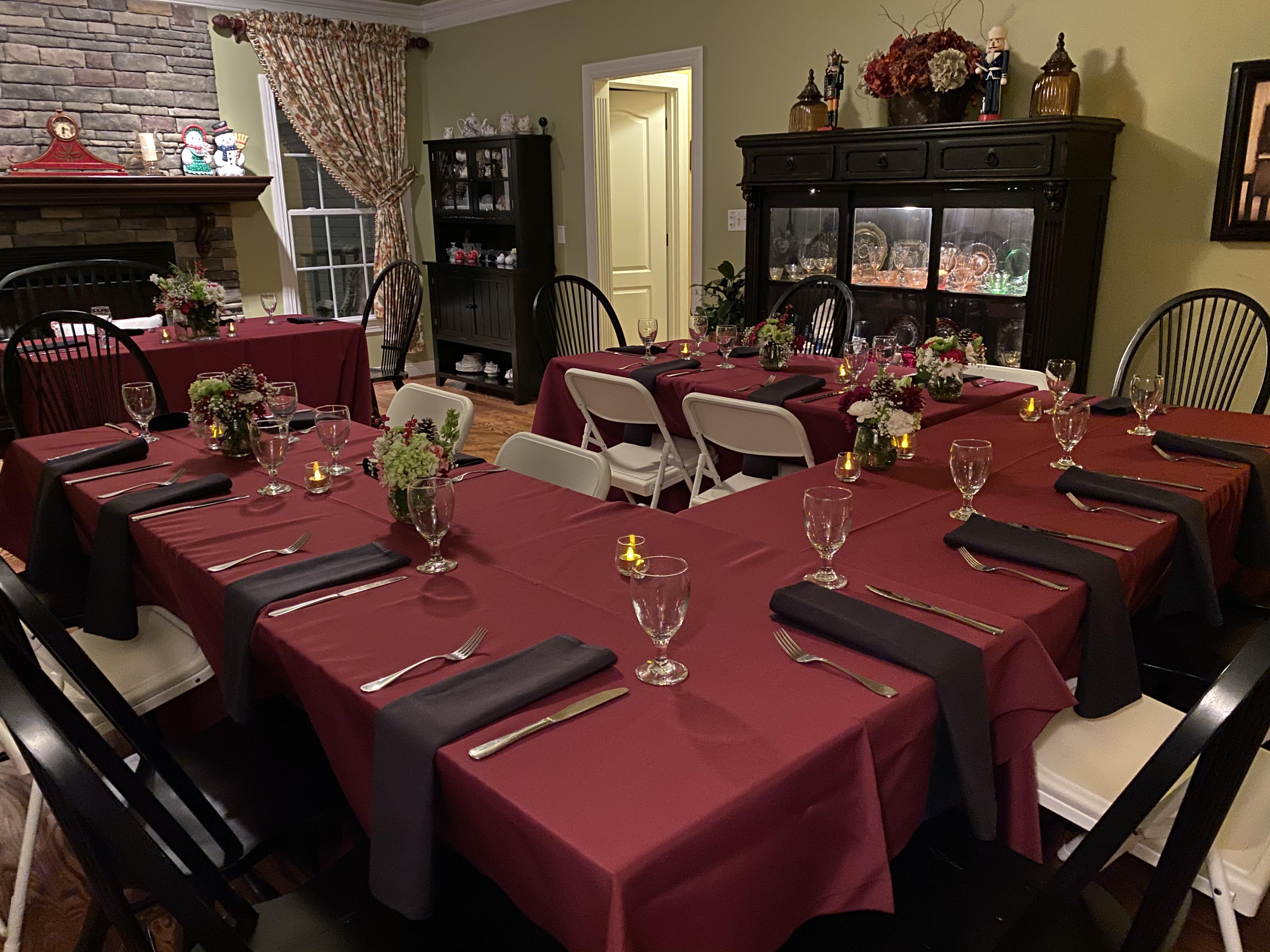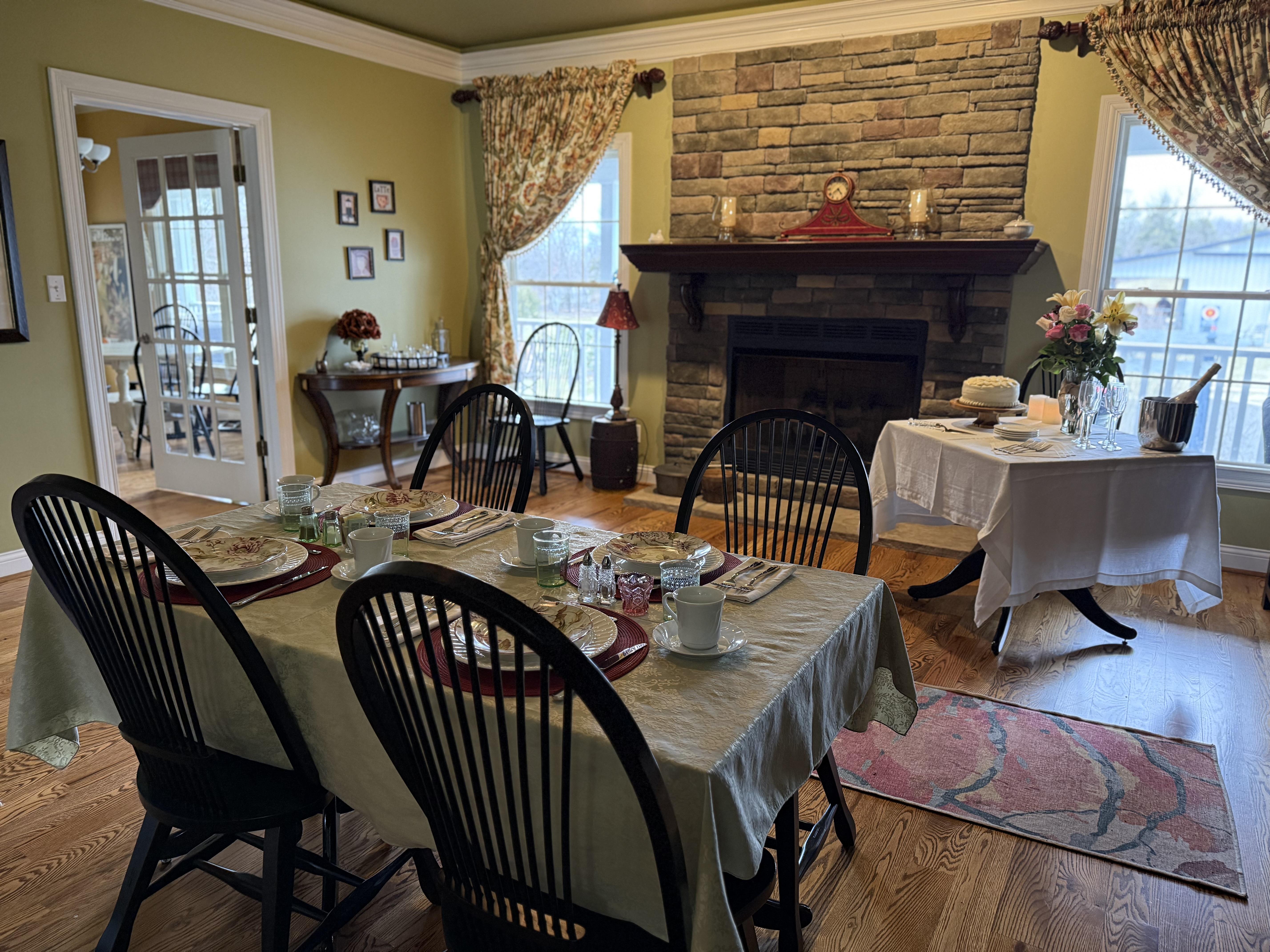 Our intimate dining room, where the warm glow of a crackling fireplace sets a romantic and inviting ambiance. This space offers a cozy and elegant setting for a smaller wedding celebration, perfect for creating cherished memories with your closest loved ones. A formal seated dinner or a more relaxed gathering, our dining room with its inviting fireplace offers a versatile and charming space for your celebration. It's where love and warmth intertwine, creating a truly unforgettable experience.