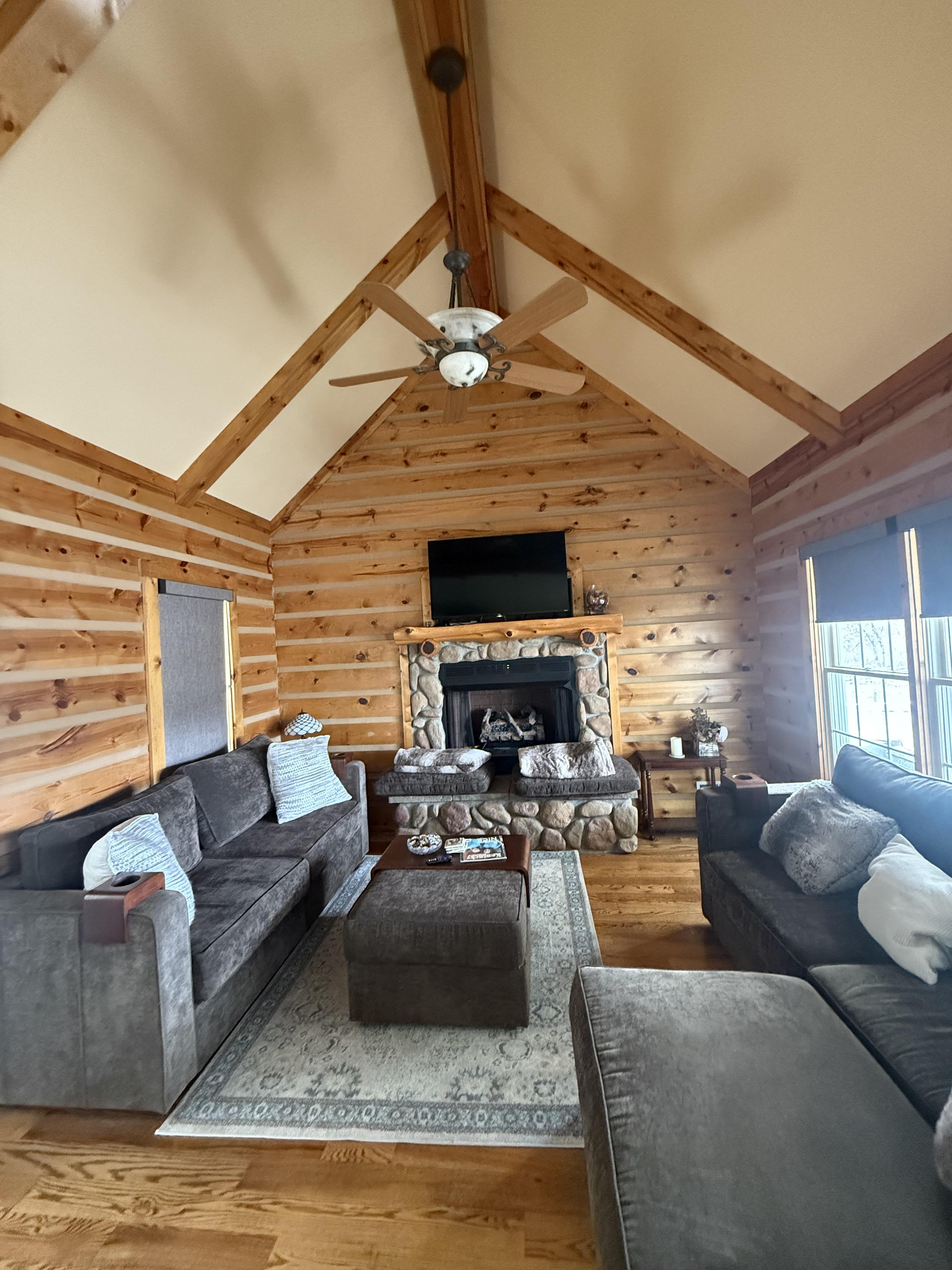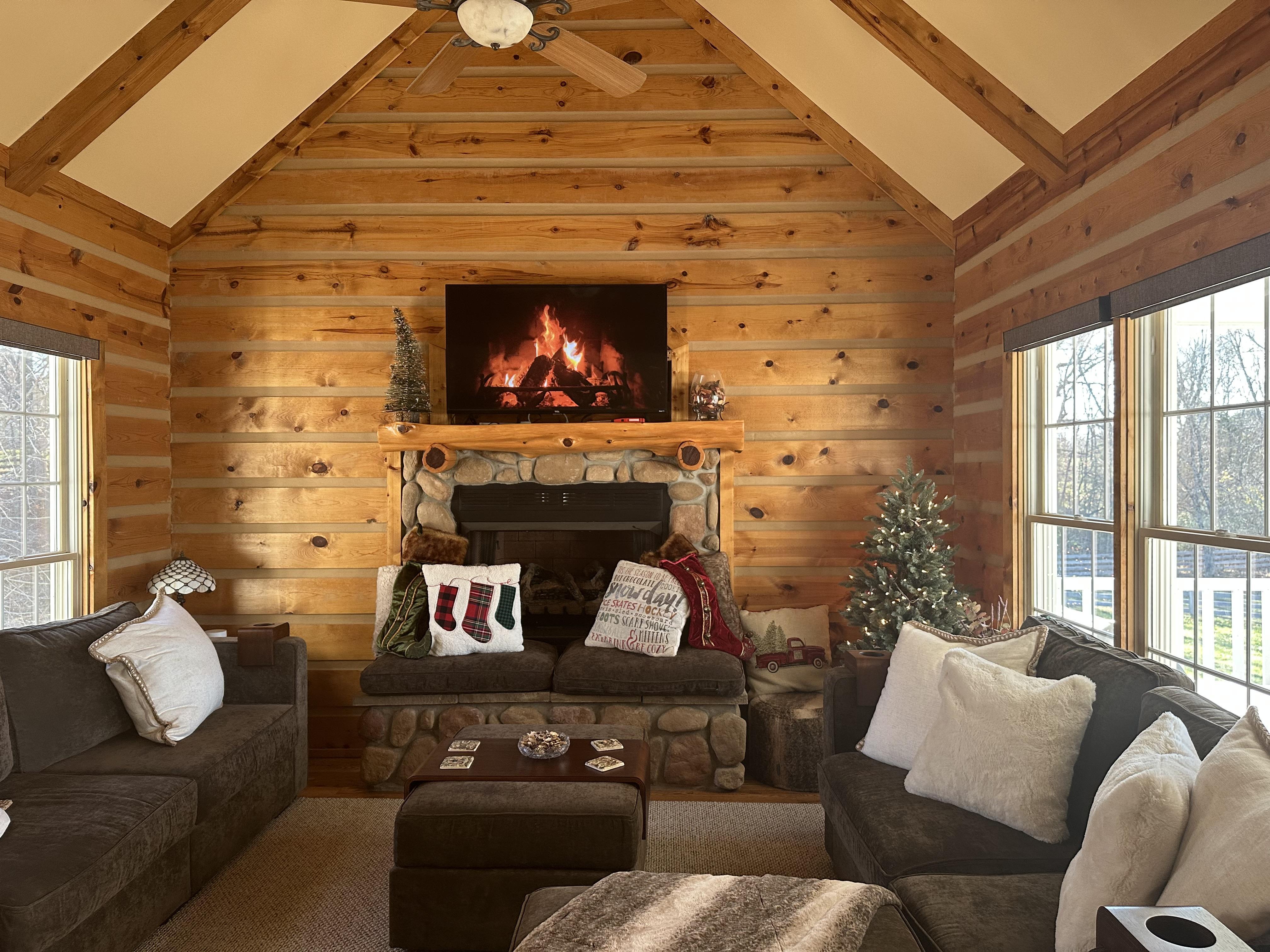 - gas fireplace for warmth or on the flat screen tv for atmosphere on a warm day! - comfortable seating - natural sunlight