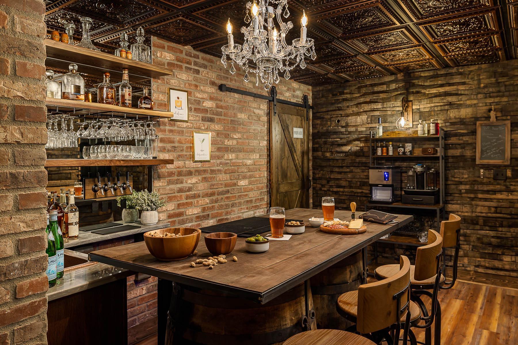 - Crystal chandelier and bar back lighting with dimmers - Custom Bourbon Barrel bar - Prohibition style barstools - Hosted or cash bar optional - Poker Lounge