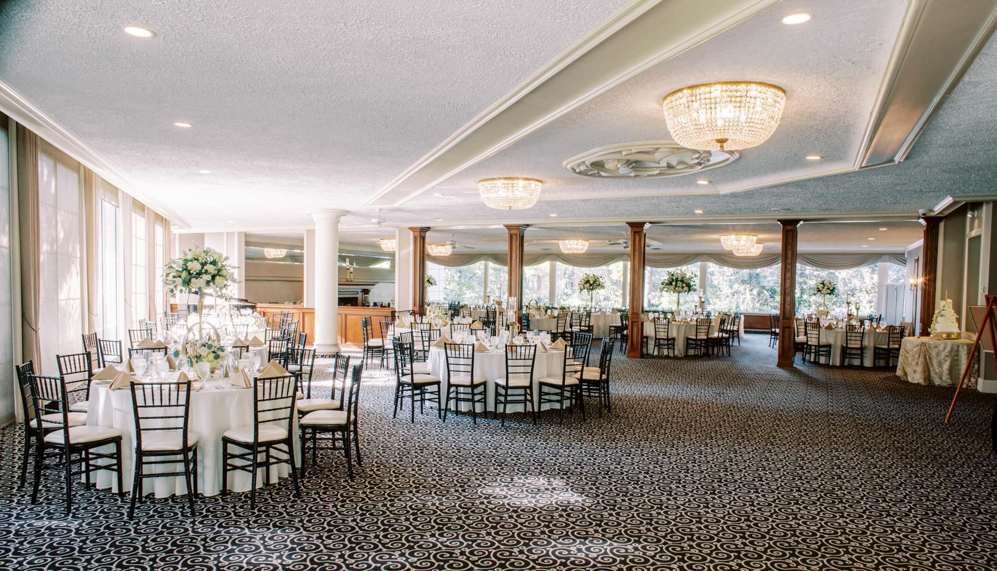 - Standard Bridal Suite with Upgraded Suite Also Available - Round Tables Seating 6 - 10 Guests - Head Table up to 12 Guests or Sweetheart - Chiavari Chairs (Mahogany) - White, Ivory or Black Table Linens, and Colored Napkins - China & Glassware - House Décor (No Centerpieces/Signage/Cardbox) - Permanent Placement Bar (Outdoor Bar Available as Add On) - Iron Patio Furniture - Vendor Seating Outside Capacity (8 Maximum) - Renovated Restrooms - Coat Closet - In House Catering & Bar Services