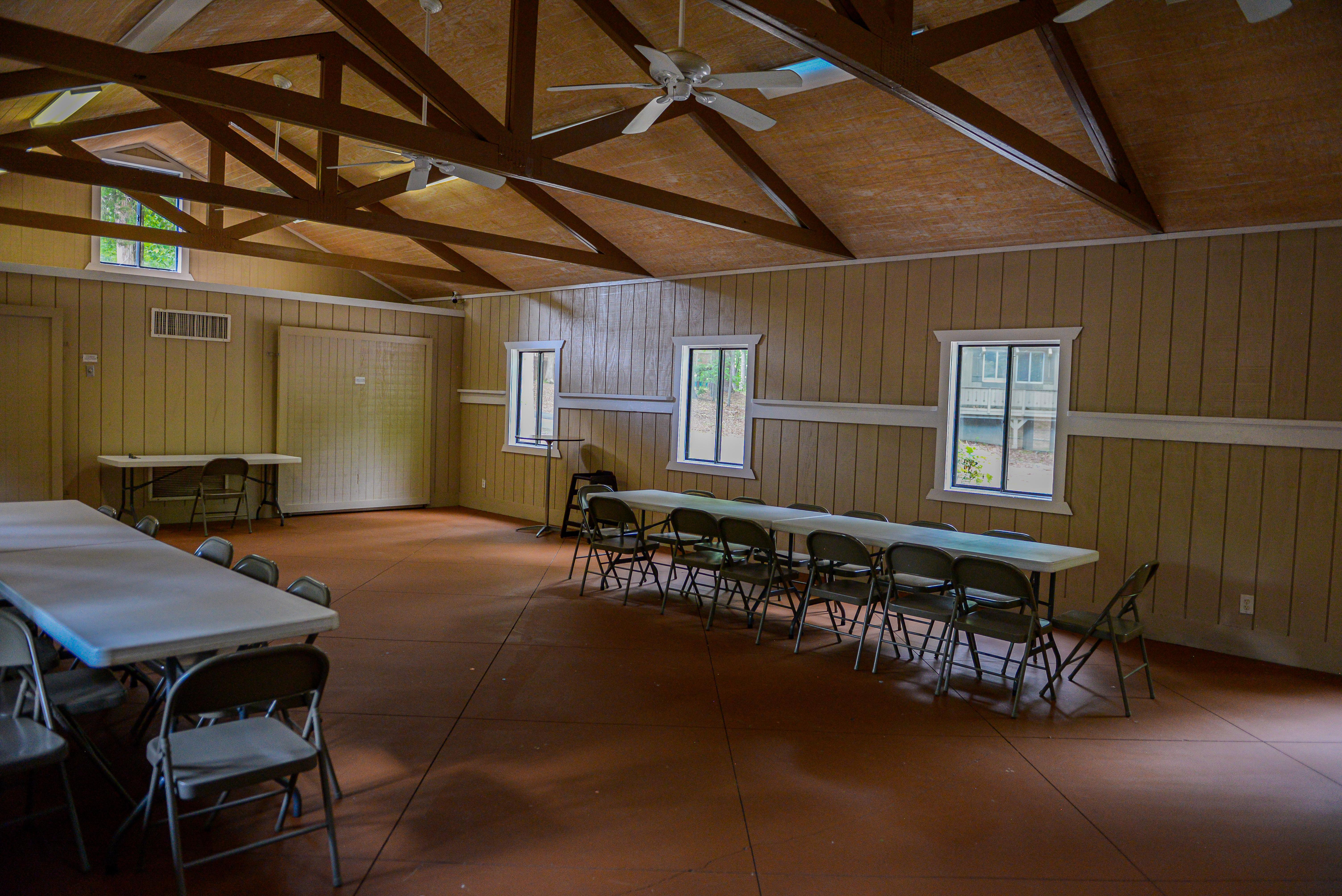 tables and chairs prep area ceiling fans