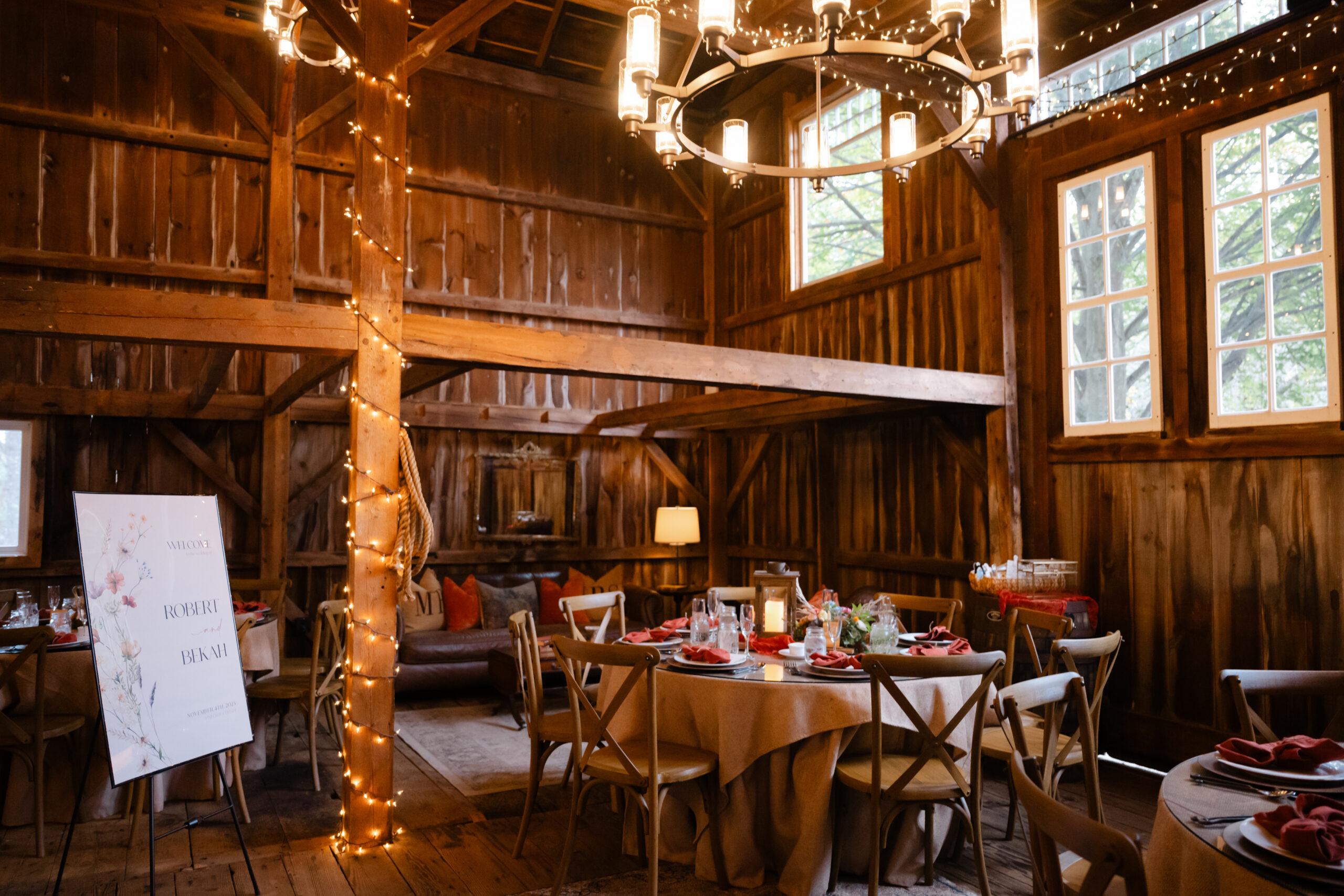 Rustic elegance combines all-natural elements to create a look that’s warm and inviting even as it’s imperfect and distressed in its old-world elegance. The design blends the high style and classic aesthetic of quality antiques with the modern desire for comfort, convenience and beauty. Come and experience the romance in our all original 1815 post and beam barn, where rustic elegance unites with the charm of the Connecticut countryside. Built on 9 private acres, nestled between the French River and West Thompson Lake, couples feel completely swept away by the exclusivity and wonder of this property. A truly one-of-a-kind and intimate venue to showcase your special day.