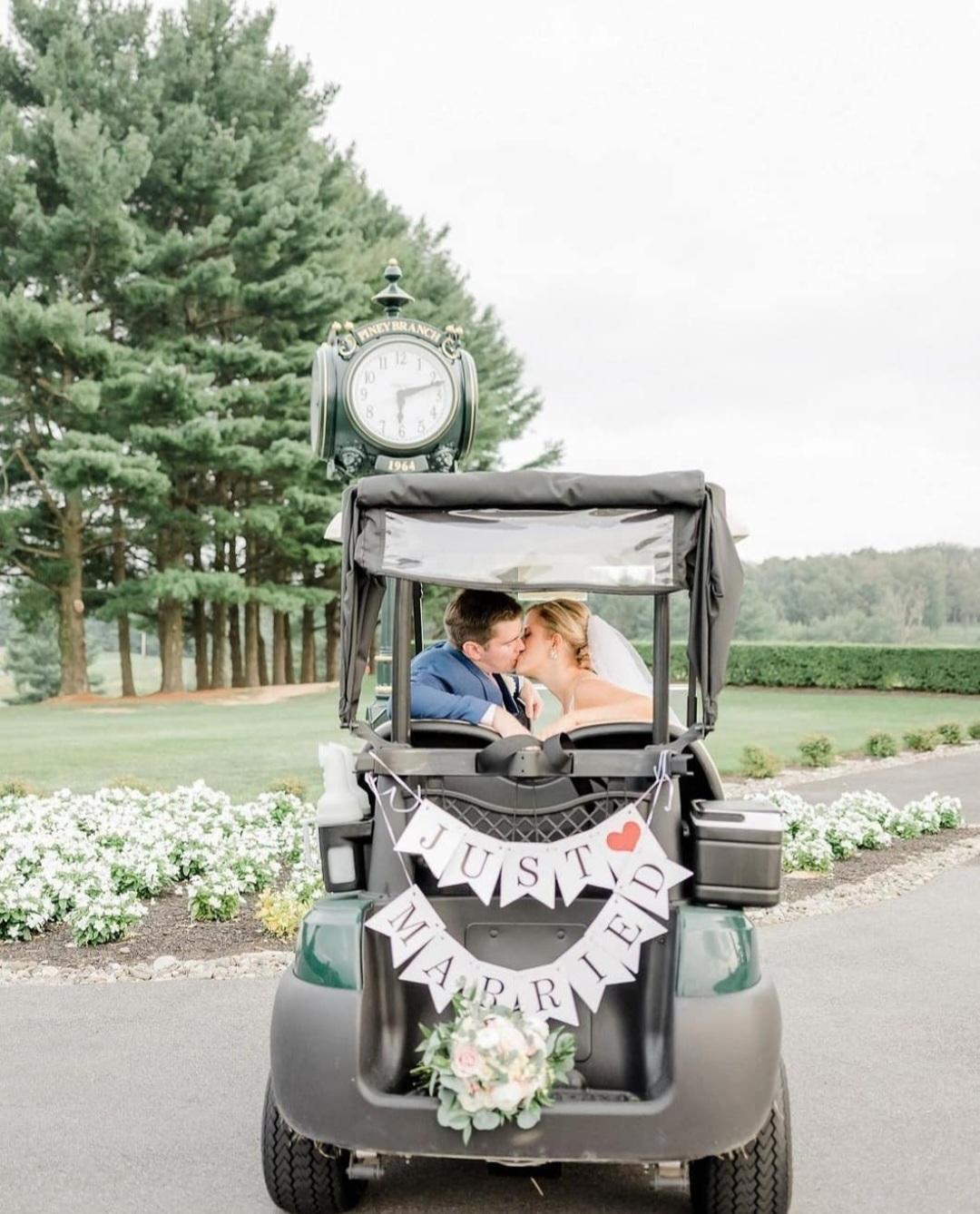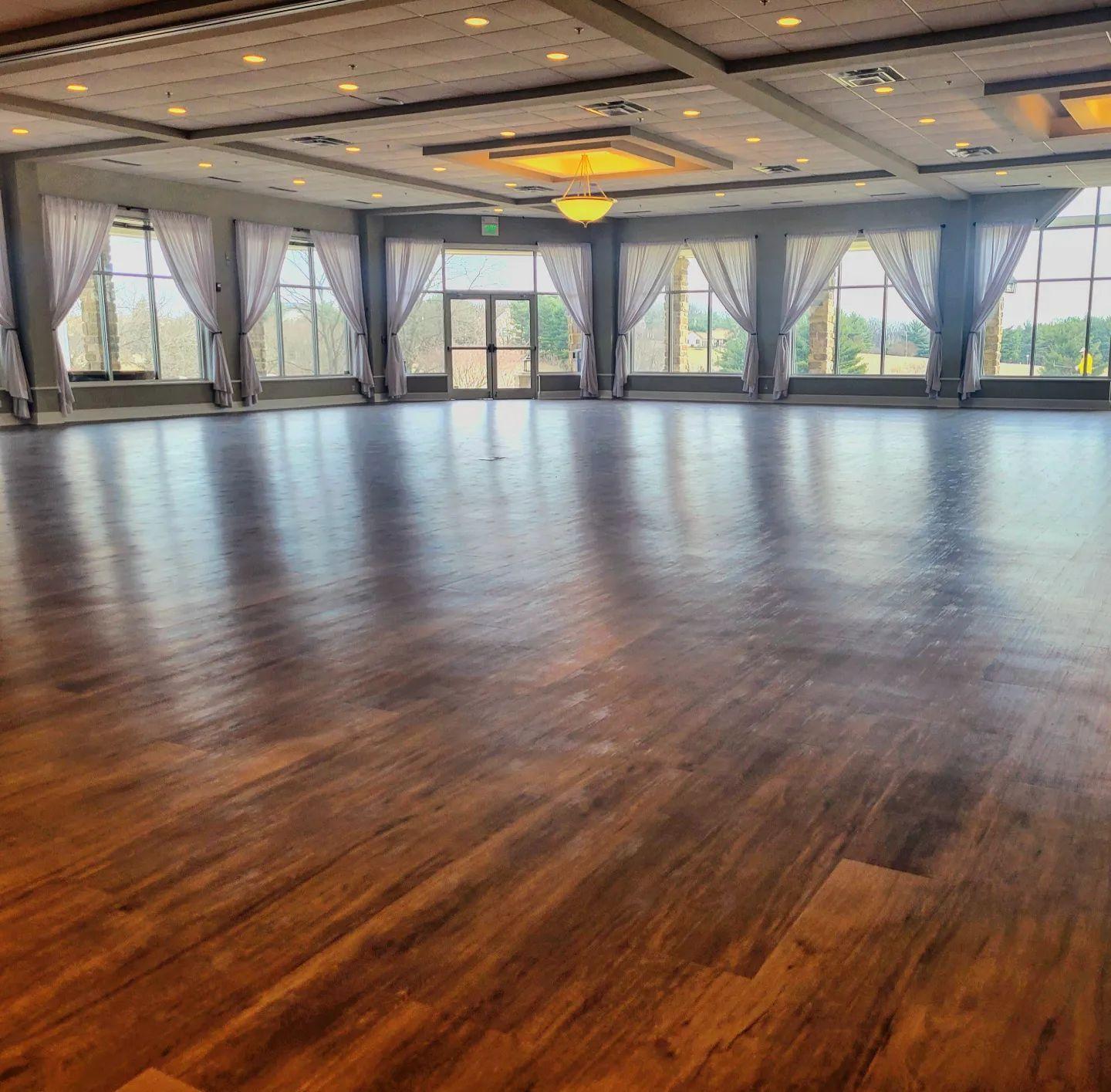 The Piney Branch Golf Club is an award-winning wedding venue in Upperco, Maryland. Piney Branch offers a classic venue option for couples who want an elegant indoor vibe with picturesque views outside. Draped curtains and gold chiavari chairs provide a regal touch to the ballroom while twinkling bistro lights illuminate the outdoor covered pavilion. Couples may host up to 250 wedding guests within Piney Branch’s ballroom event space. The covered pavilion is perfect for cocktail hours, ceremonies and seated events for under 75 guests.