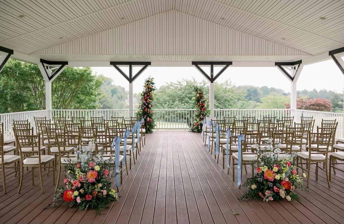 Our outdoor covered Pavilion overlooking our beautiful greens, is the perfect space to host your ceremony, cocktail hour, or event.