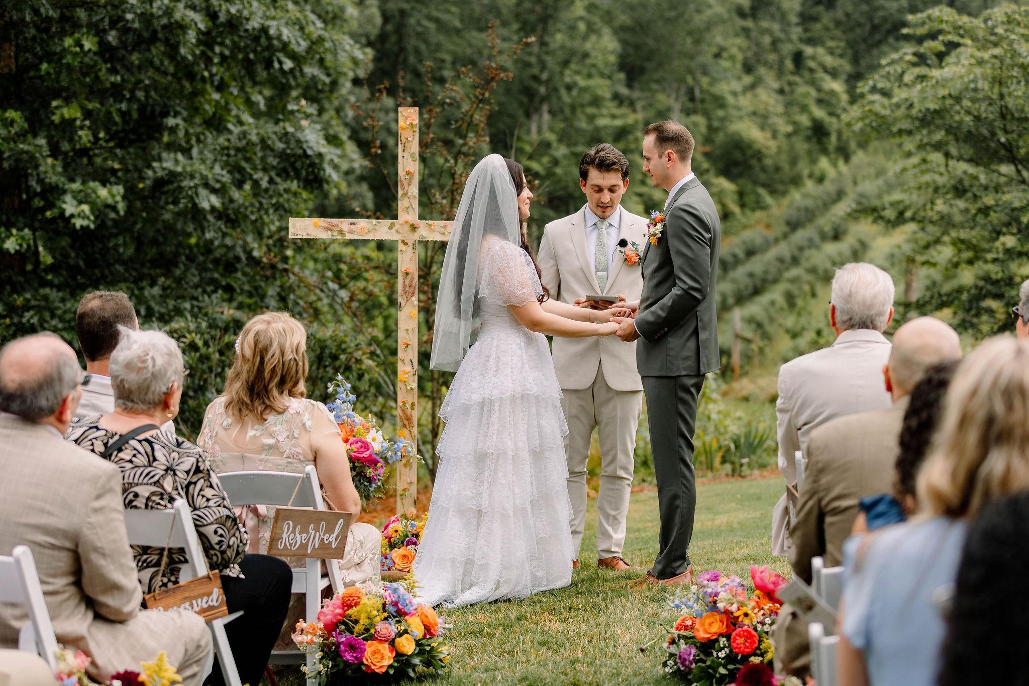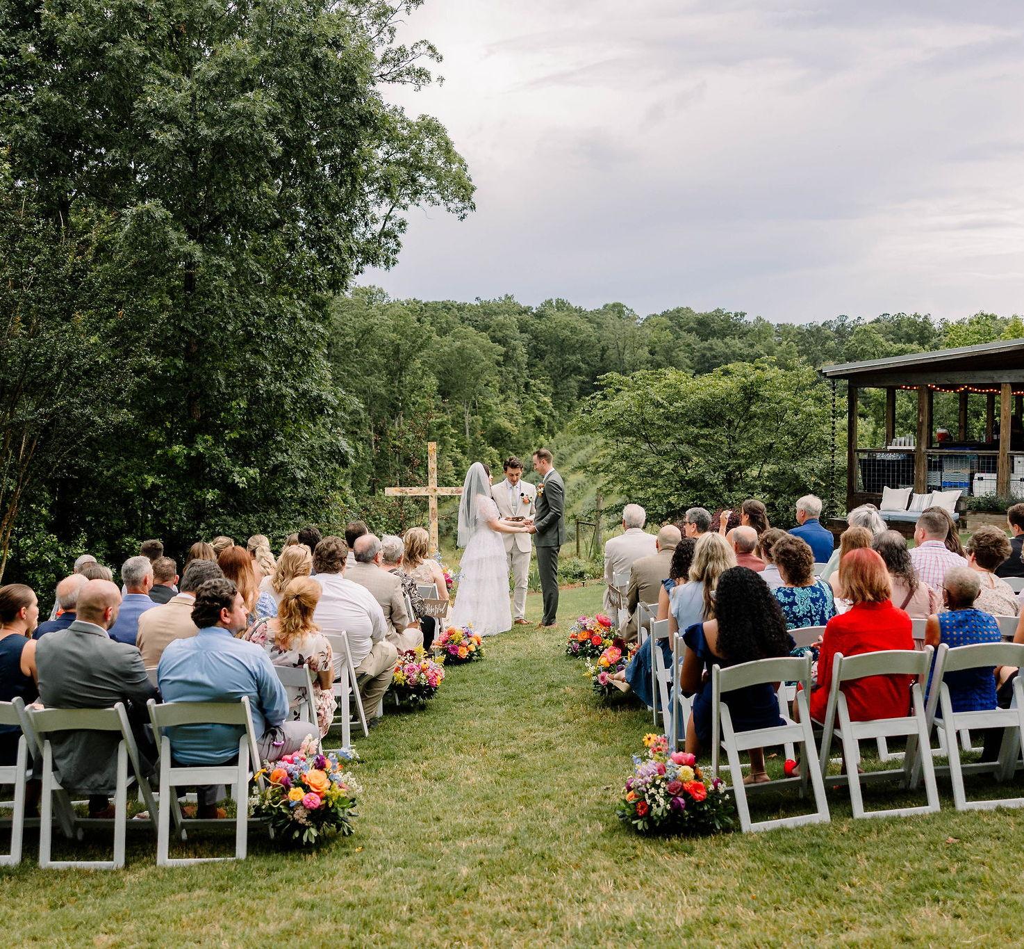 At Pleasant Union Farm, all-inclusive doesn’t mean cookie-cutter. Our light-filled barn with modern glass doors, white walls, and sweeping garden views creates a backdrop that feels timeless and inviting. Outdoors, string lights and wide porches set the stage for an effortless farm-to-table celebration that’s both elevated and relaxed. Menus are chef-crafted around what’s fresh and local — heirloom tomatoes in July, butternut squash in November — while bouquets are gathered from our gardens and North Georgia’s community of flower farms. The result is a wedding that feels intentional, seasonal, and unmistakably yours. With spaces for 25 to 150 guests, full-service planning, and just one wedding per day, we handle the details so you can enjoy the moments — from garden vows to string-lit toasts overlooking the blueberry fields.