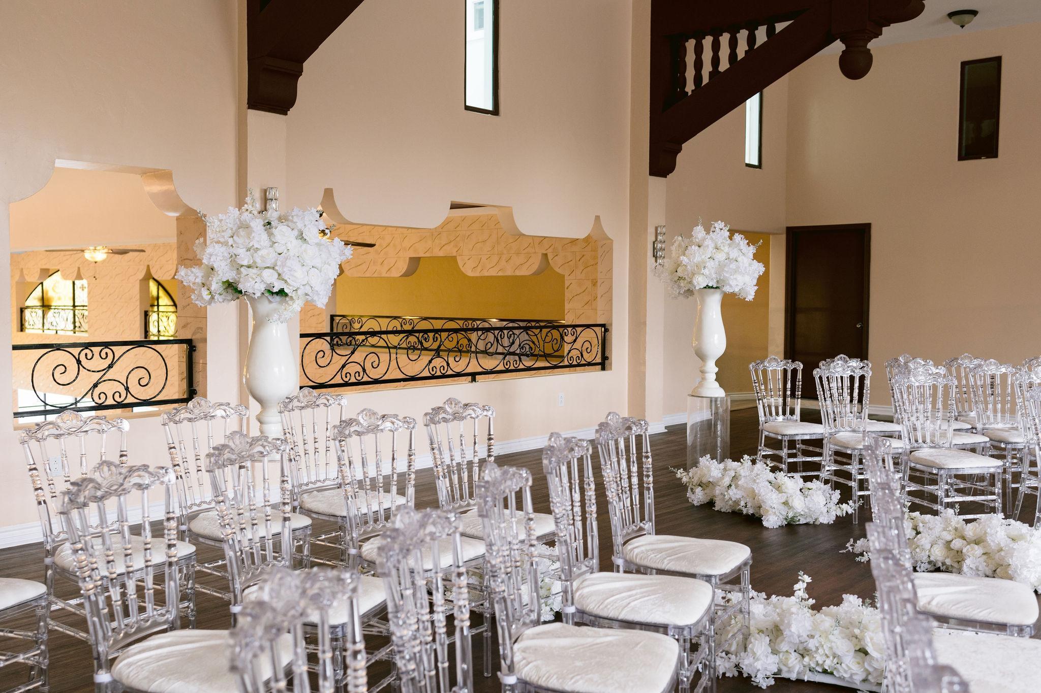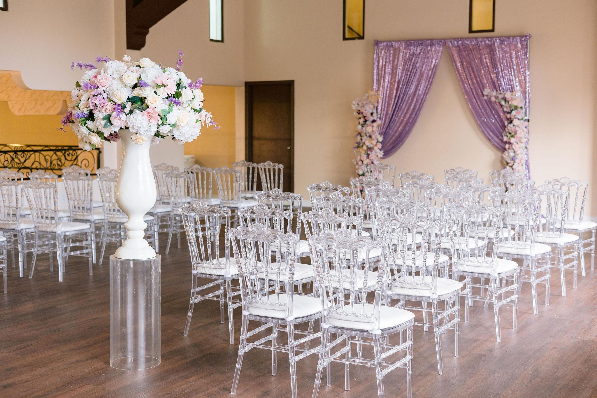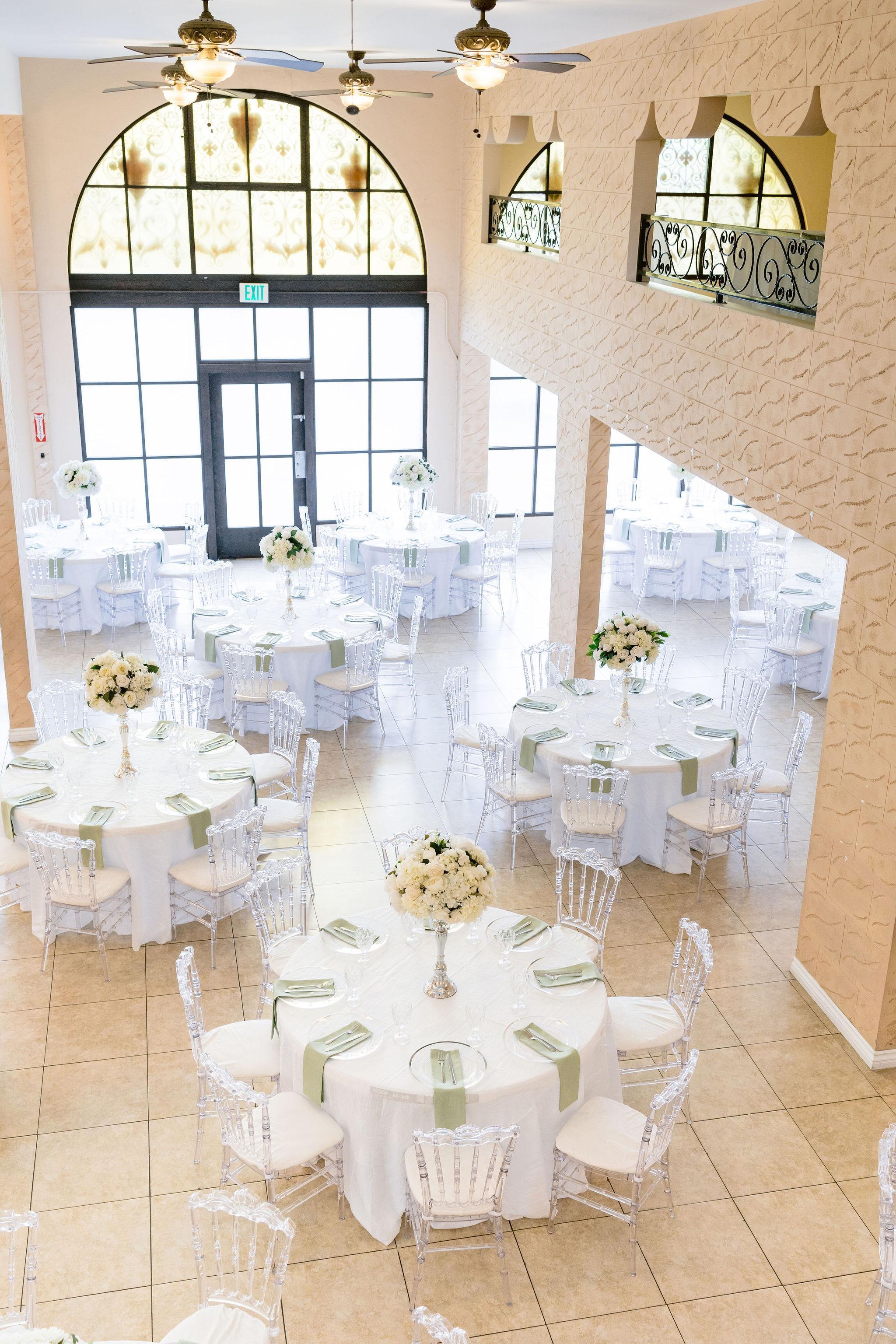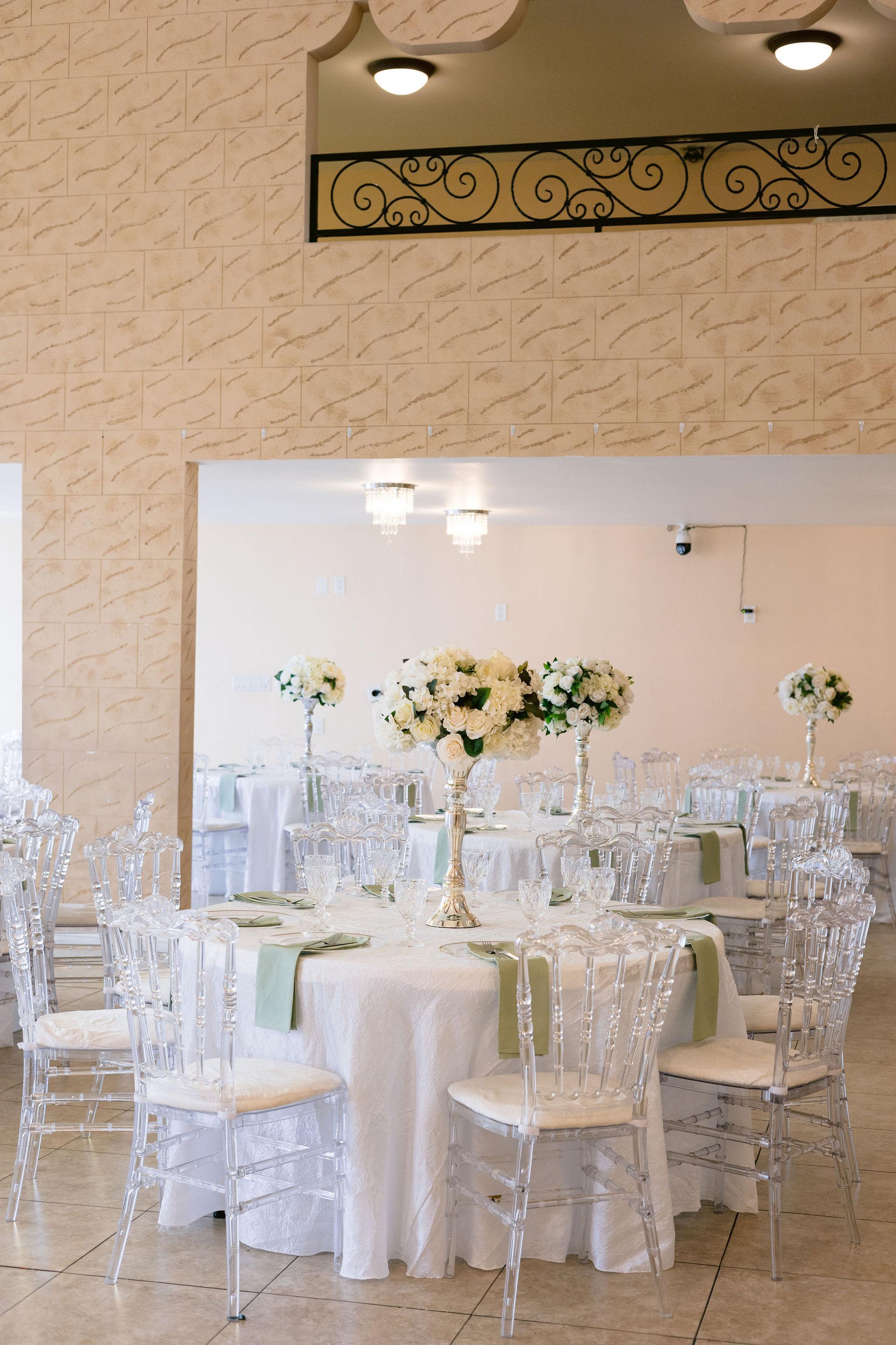 -Bridal Room -Bar Area -Wall Mounted projector -Clear Acrylic Chairs -Round Tables