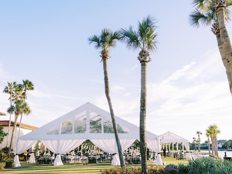 The South Lawn offers a spectacular setting for tented or open-air receptions, showcasing sweeping views of the first tee of the Ocean Course.