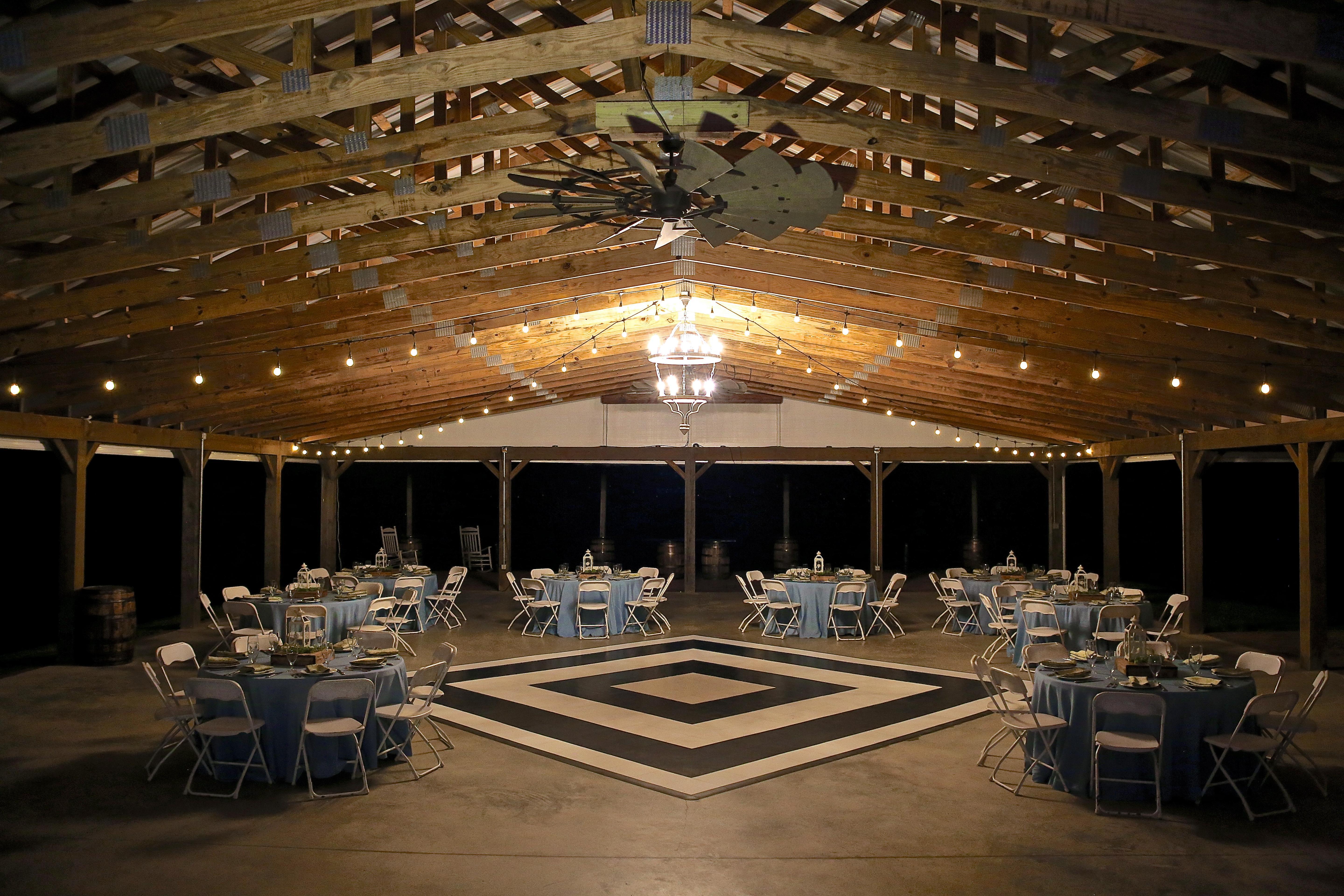 50x90 covered space that with 50x20 patio that is perfect for cocktail hour! The pavilion is the perfect place to hold your wedding reception, bridal shower, or luncheon! Everything within the pavilion is movable to make your event truly unique!