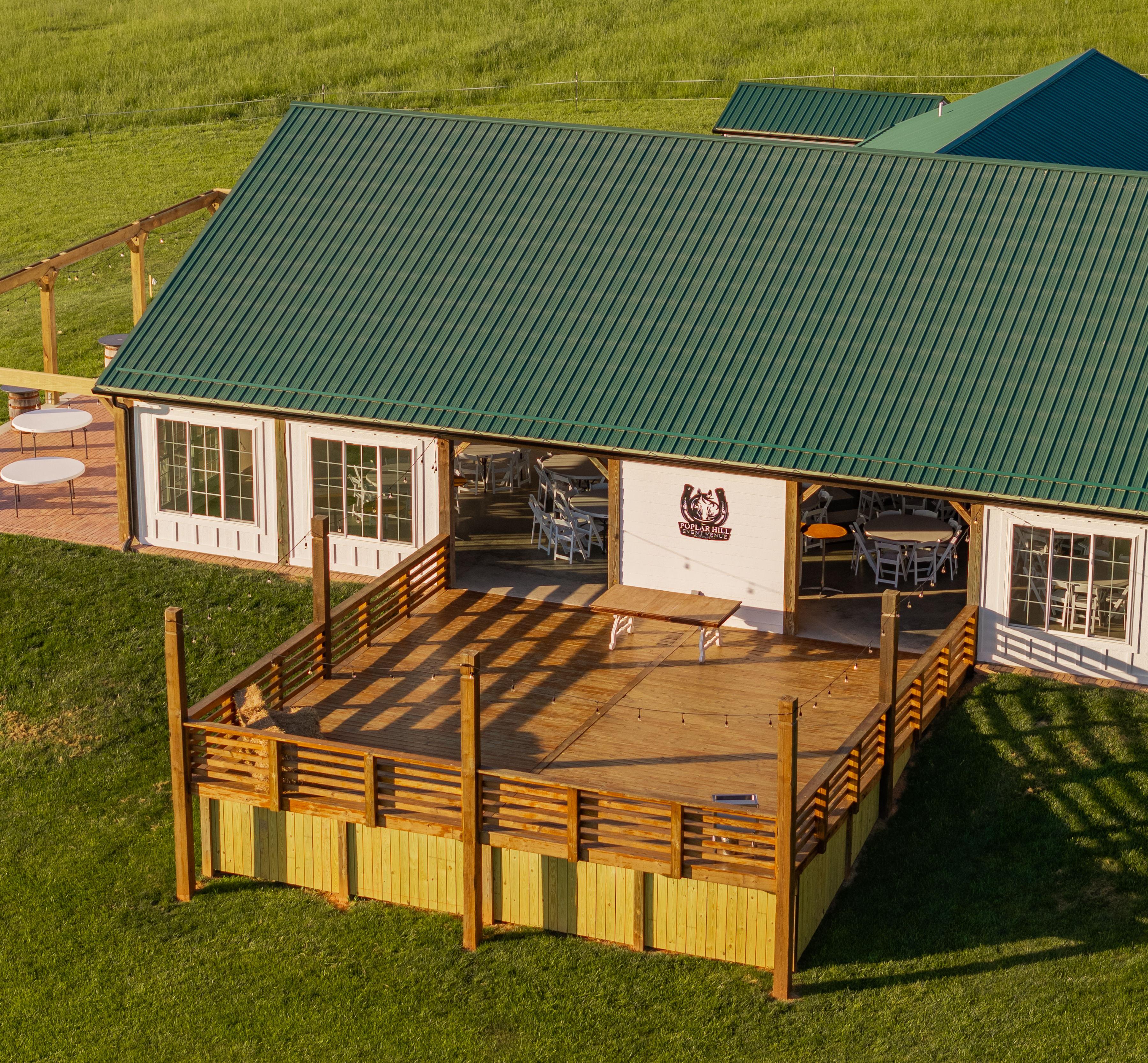 -Chandelier and string lights that are dimmable -Dance Floor -Moveable Bar - 30 tables -200 white resin padded chairs -white tablecloths -6 cocktail tables -Sweet heart table -4 six foot banquet tables -The She Share Shack, Wedding Decor and more that we share -Event games -Fully equipped Bar Bin, our newest bar space created from an old grain bin - three staff personnel for each event with or without catering to insure an awesome time -the most picturesque views this side of the mountains
