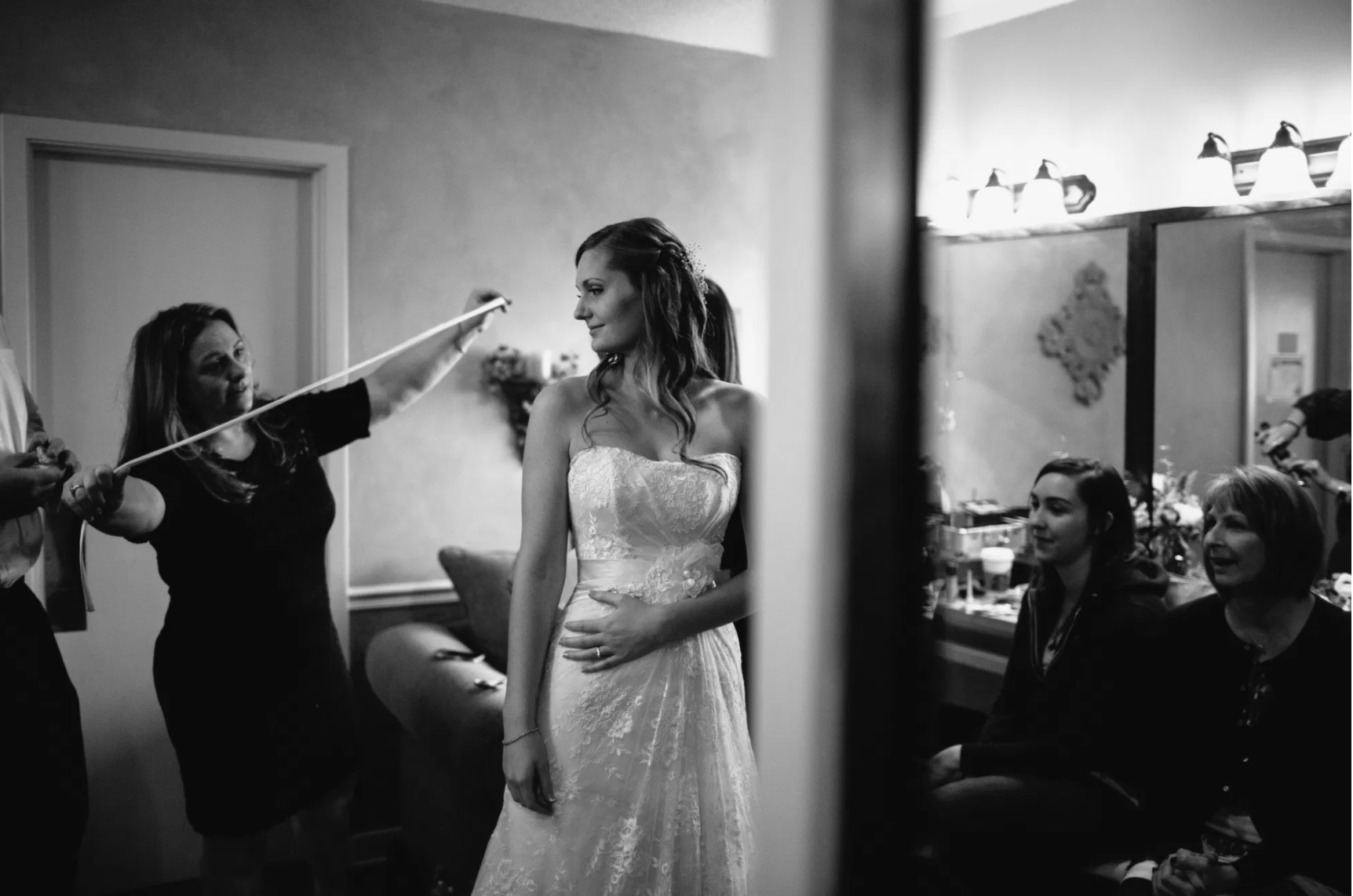 Our quaint Bridal Suite features a vanity area, full length mirror, private restrooms, love seat and plenty of wardrobe space. Relax in comfort while you dress to impress for your big day!