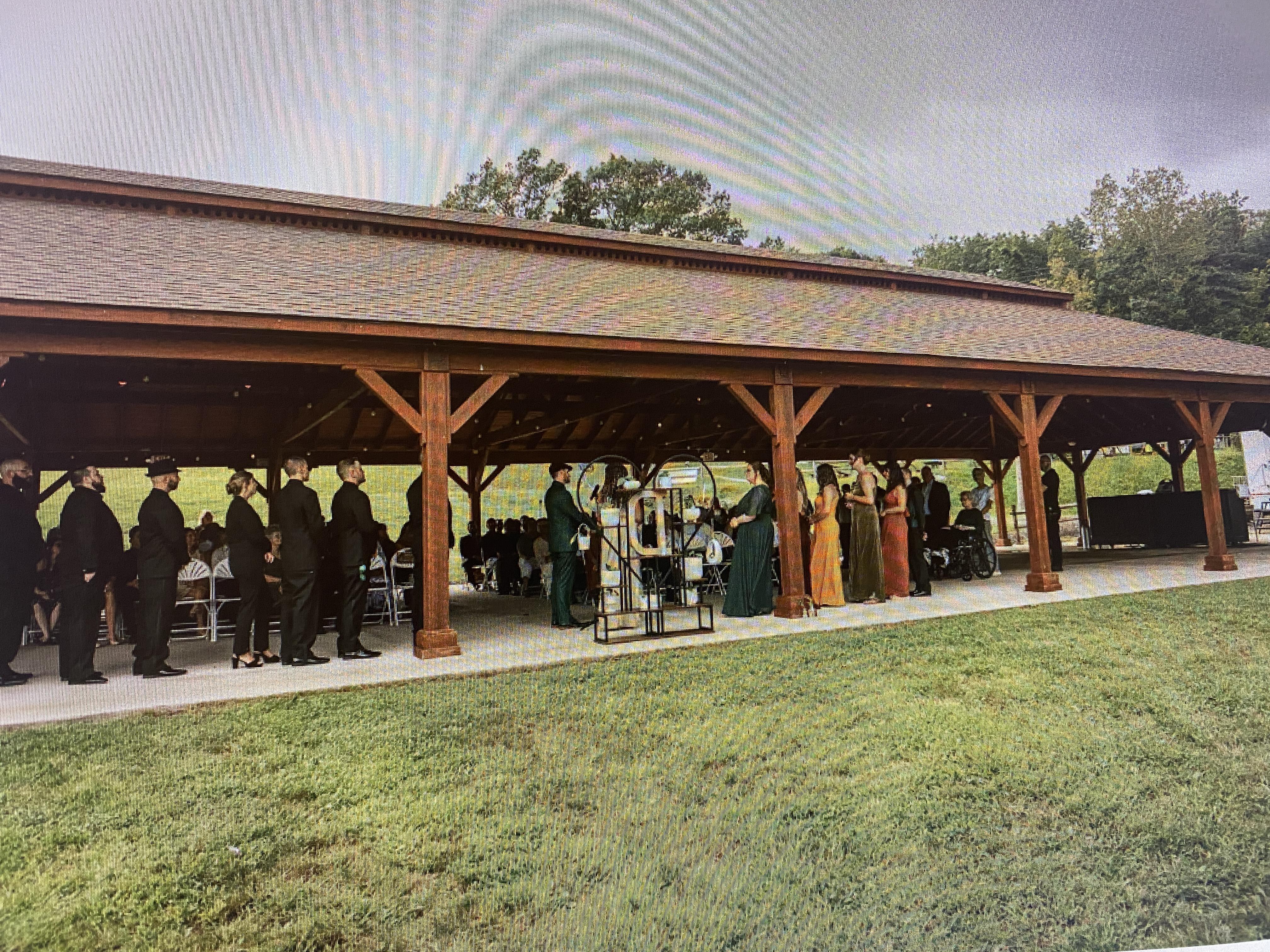 This space is approximately 4,000 square feet, located next to our pond. Has adjoining flat grassy areas for a ceremony or to sit around a firepit and play some yard games.