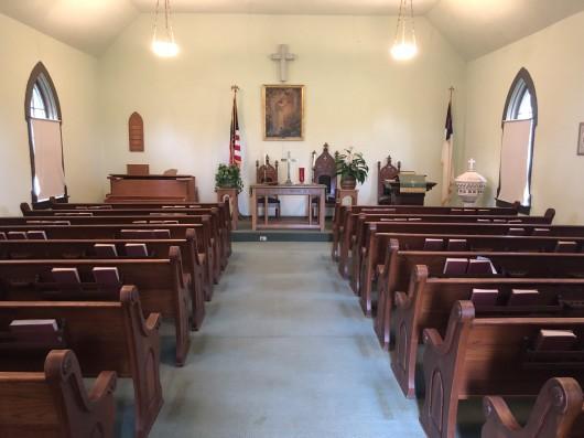 This chapel features vintage pews and the 1800s prairie chapel. It also has space for around 100 people to sit comfortably!