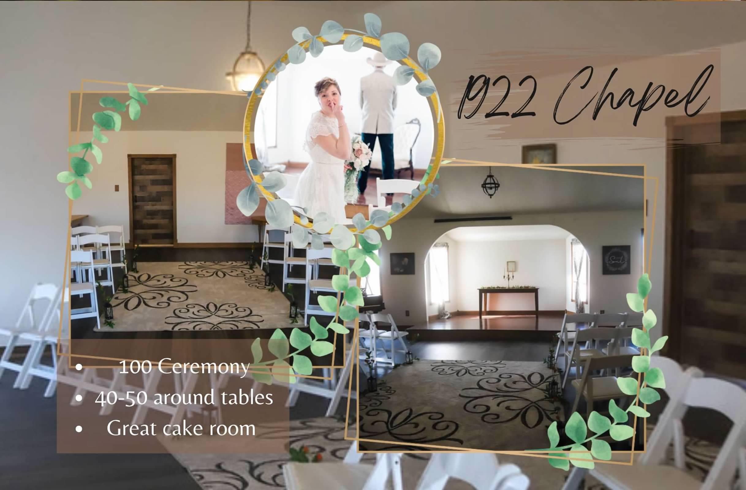 This space is a quaint, ideal space for so many aspects of your wedding. The perfect wedding chapel for a ceremony of 100 or less. It also is a great space for a bridal shower or baby shower. It’s the perfect spot for a Sunday morning send off brunch.