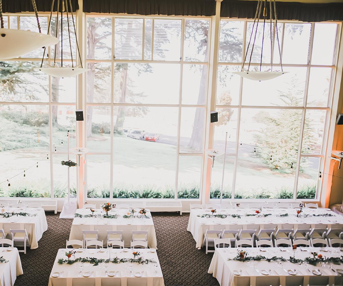 The all-inclusive packages at our venues give you peace of mind knowing that you're saving money and have WAY less work to do. Plus, your wedding vendors are trusted and familiar with your venue. Your guests will be amazed with how you pulled it off... but you'll know how easy it really was. Floor-To-Ceiling Windows with Gorgeous Bay Views. Raised Deck for Unmatched Views. Picturesque Courtyard and Manicured Landscaping. Multiple Reception Options to Suit Your Style and Wedding Size from Intimate to Colossal. Period Features and Refined Yet Neutral Styling. CEREMONY: Available when paired with full reception at the Golden Gate Club. Includes Open-Air or Covered Ceremony Location with Coordination, Rehearsal, Full Set-Up & Breakdown ($1,495)
