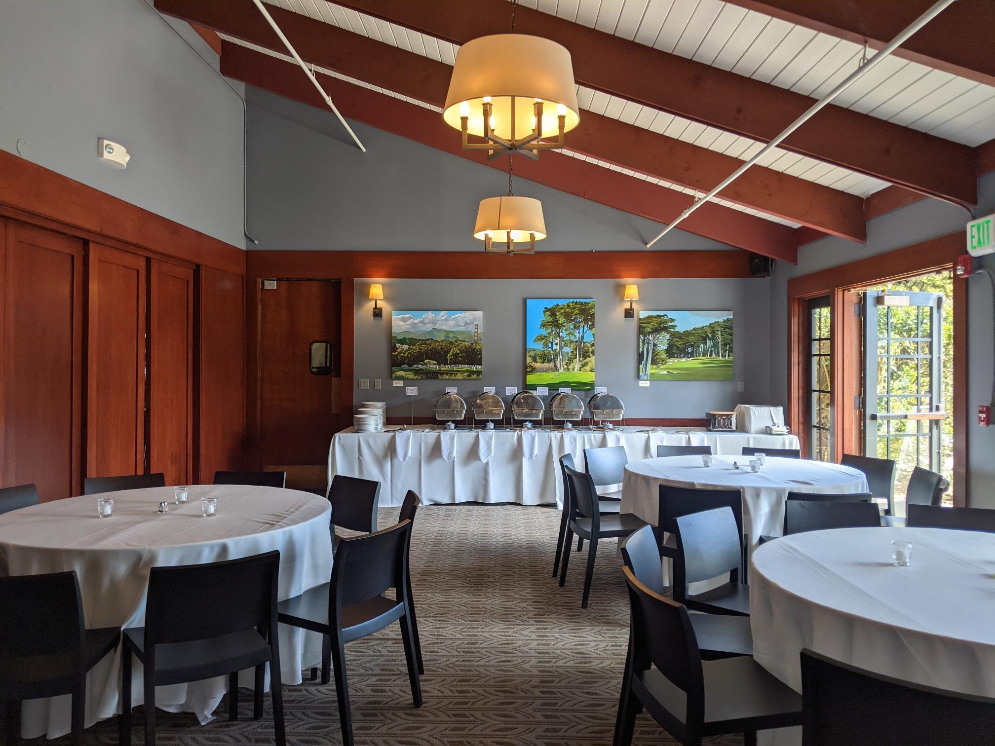 Built in the heart of the Presidio of San Francisco, a national park, and conveniently located just 10 minutes from downtown San Francisco, the Presidio Clubhouse offers breathtaking surroundings & dramatic sunsets. Outfitted with exposed beam ceilings, rich cherry wood paneling, a large stone fireplace & French doors, the Clubhouse & attached Tented Terrace offer sweeping views of the golf course. Our guests enjoy the ambiance of a country lodge enhanced by our rich history, & the time honored traditions of a grand golf course built over a century ago, making the Presidio Clubhouse a unique setting for your event. In addition to the Clubhouse, we have tented our outdoor terrace. Your guests will find the Tented Terrace & Clubhouse equally comfortable and inviting. The tent is equipped with heaters which run on thermostats & have a track lighting system with dimmers, allowing for an intimate dinner or festive dancing area!