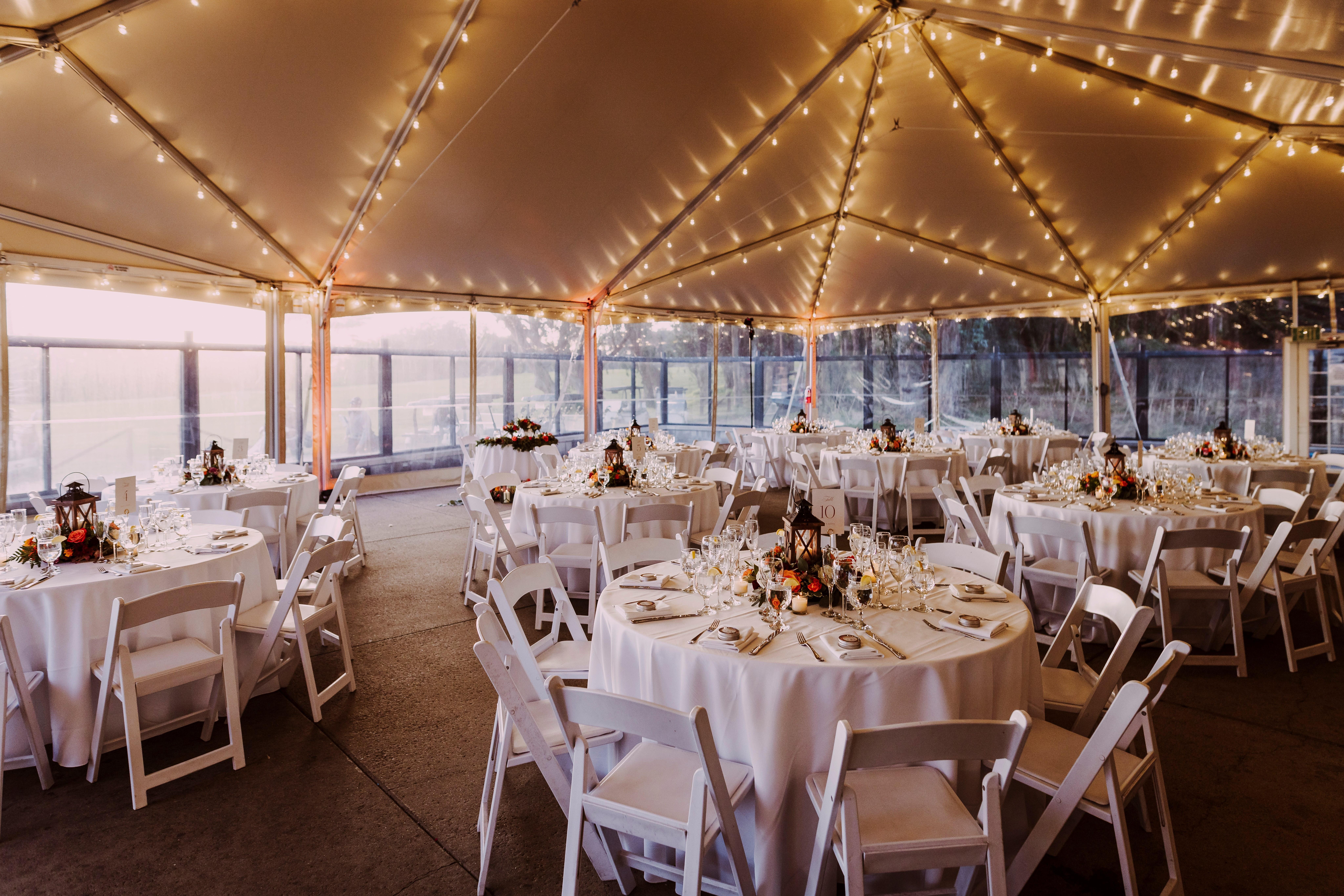 The perfect space for your plated or buffet dinner reception with gorgeous views and overhead Edison bulb lighting - The Tented Terrace.