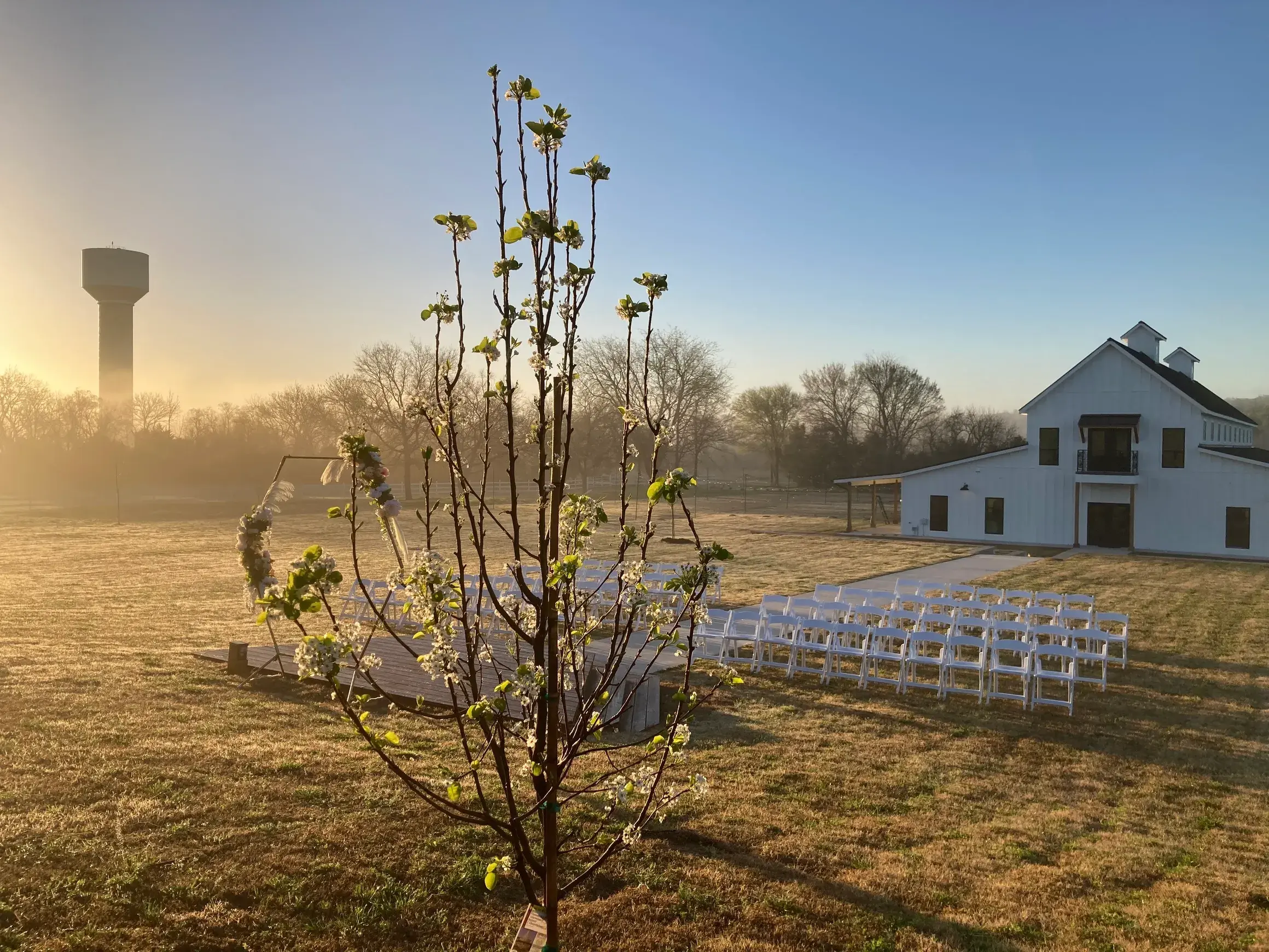 Primrose Hill Wedding & Events is tucked away in the rolling country hills of Van Alstyne, TX. Situated on 20 acres of beautiful land surrounded by oak, pine, and cedars. Secluded from the outside world, this rustic countryside setting is perfect for weddings, quinceañeras, or other special event. Driving over a natural secluded creek and alongside a white ranch style fence you will find yourself in a distinct and unique setting to celebrate your special occasion.