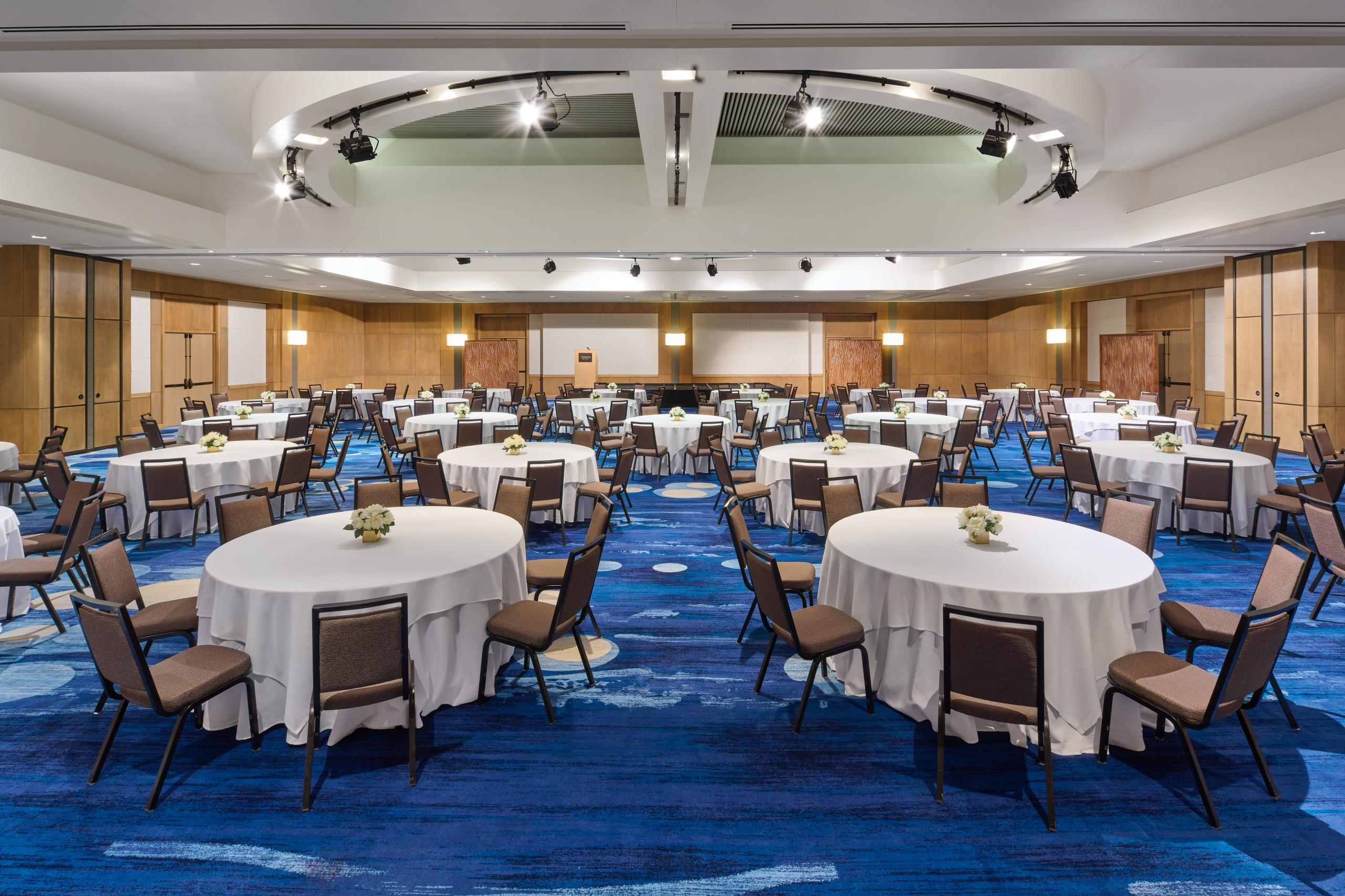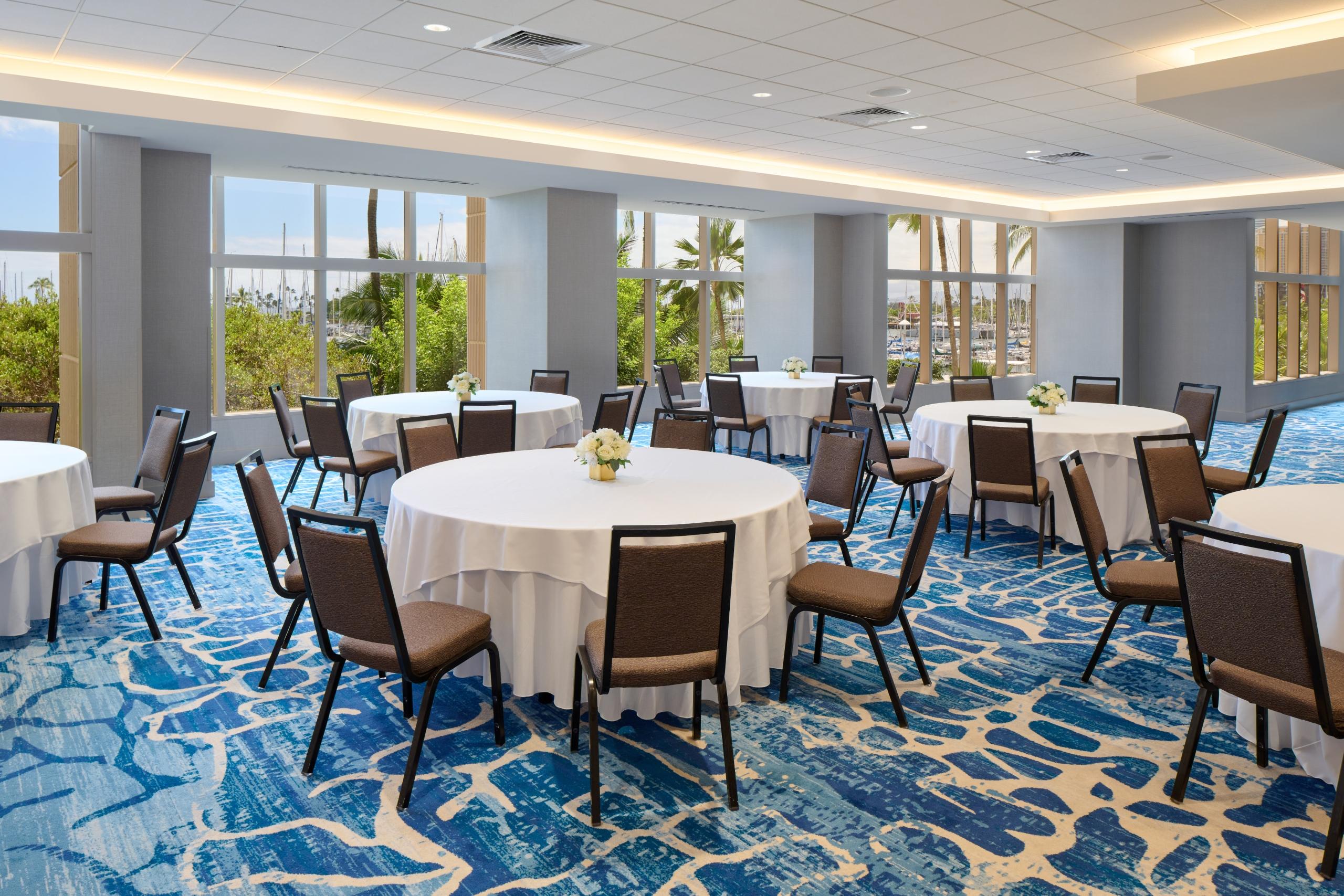The newly renovated Pi'inaio Ballroom is our largest and most versatile indoor event space. This expansive 6,960 sq. ft. venue features tasteful finishes and state-of-the-art technological capabilities, including advanced audio and video equipment. With the flexibility of a versatile air wall, the ballroom can be configured to host a variety of events, from grand celebrations with up to 460 guests for a banquet to smaller, more intimate gatherings.