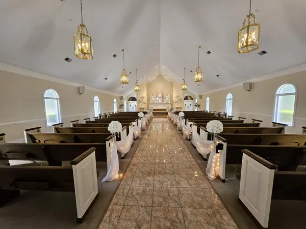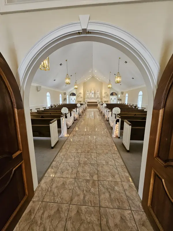 • 108 ft marble center aisle • Venue seating up to 300 • Electronic Organ/Piano • Sound system with overhead mics