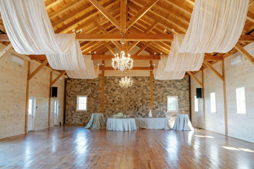 The spectacular main room is perfect for such occasions should you prefer being indoors. What’s more, this is an unrivaled location for your reception. Exuding a rustic-charm aesthetic, this room is defined by cozy hardwood flooring, stonewalls, and chandeliers. It is also conveniently climate-controlled to ensure your function is comfortable regardless of the season.