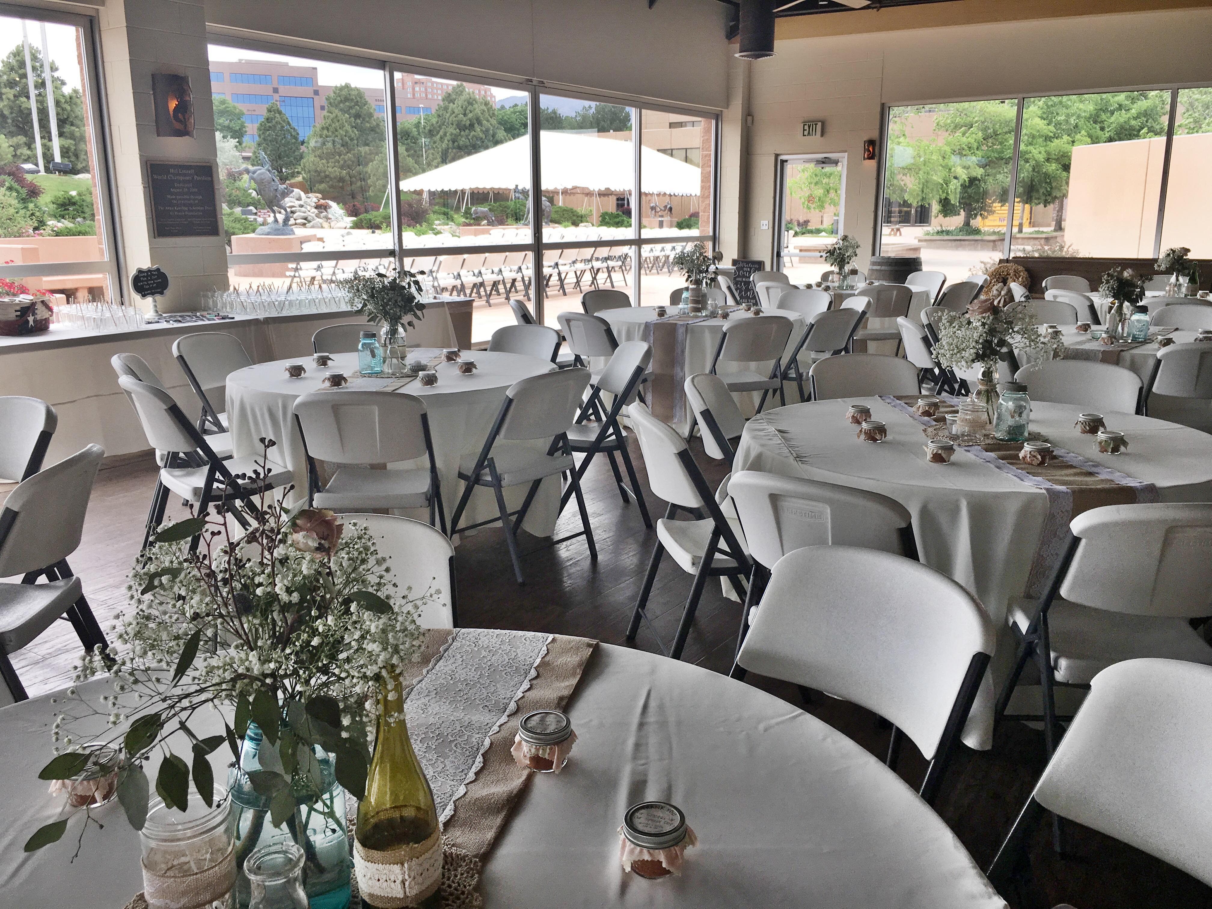 The ProRodeo Hall of Fame and Museum is a venue with a Western twist. It offers four options for your wedding day. The Pavilion seats 150 people. The floor-to-ceiling sliding windows open to the gorgeous garden, waterfall, and bronze statues. The garden features two built-in stages for your ceremony, one with a view of Pikes Peak. For a larger wedding, the event tent is available from June to early fall. The tent seats up to 250 guests, and you will have access to the garden. For receptions of up to 350 people, the Museum Hall is a spacious room surrounded by rodeo history. You and your guests will have full access to the museum and garden; a perfect way for guests to pass time while you prepare for your reception. Our rodeo arena is also available for your wedding. Our staff will assist you in adding it to your day. The venue is not all-inclusive, and our rental prices allow you to focus on details that will make your day unique. For a complete list of amenities, please be in touch!