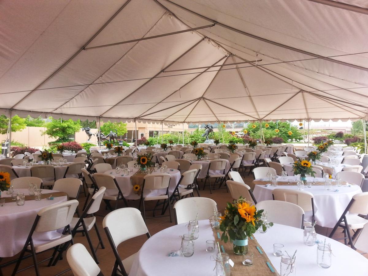 29 – 5’ round tables (seat 8) 240 – white plastic chairs 15 – 8’ tables 24 – 6’ tables 6 – 4’ tables 10 – cabarets tables Podium Projection Screen Coat rack and hangers Side wall for the tent