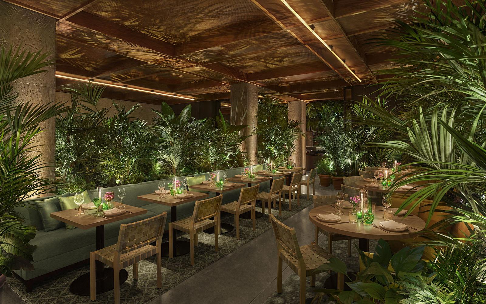 Adjacent to Popular, Bowery Garden is an expansive open-air terrace inspired by Tuileries garden in Paris and the gardens of Italy.