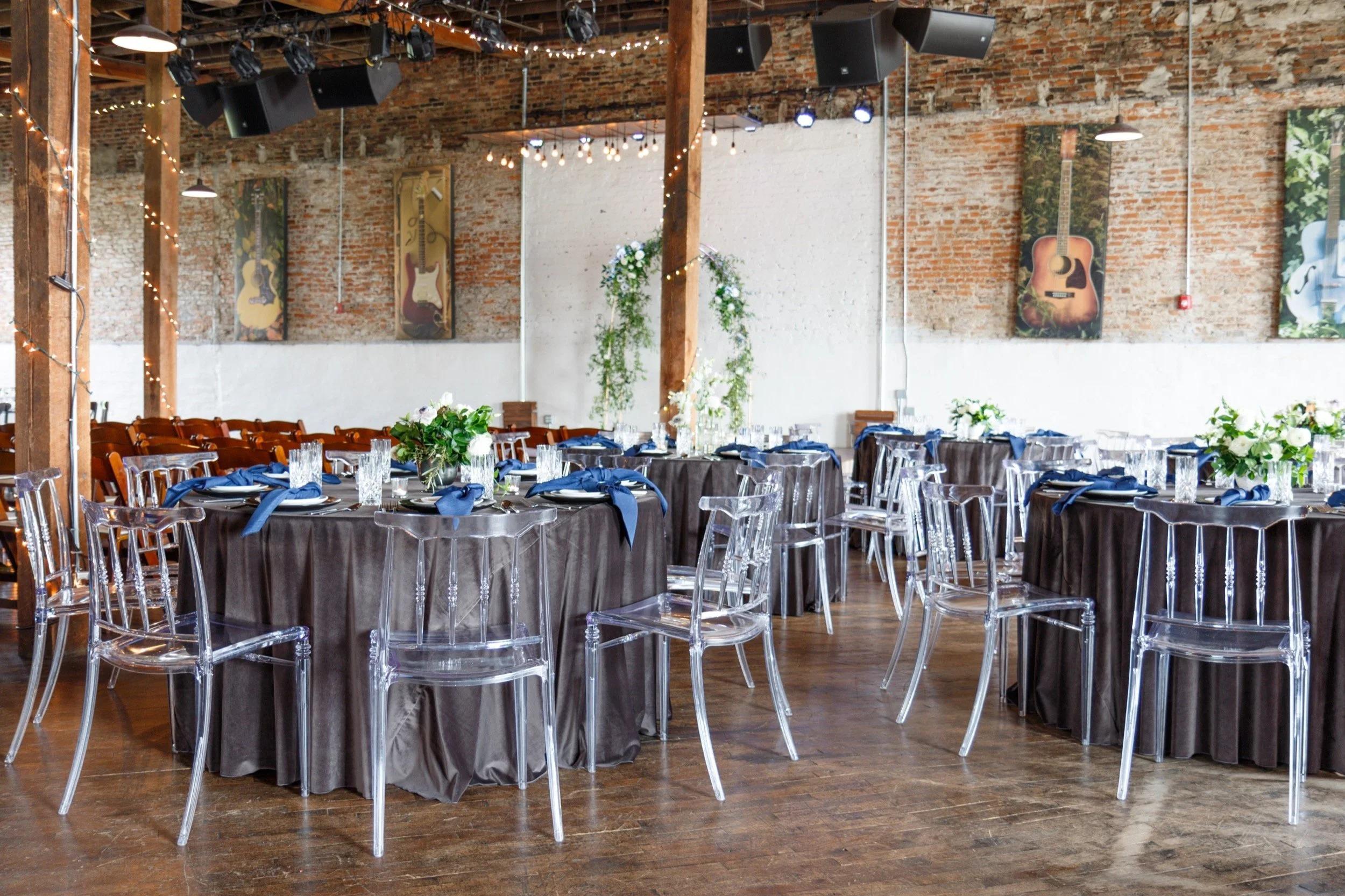 Guitar & Cadillac Hall is a stunning and versatile space located on the second floor of Puckett’s Columbia. This expansive venue blends modern style with rustic Southern charm, featuring exposed brick, an open floor plan, and a unique atmosphere that's perfect for weddings. The space can be seamlessly transformed from a beautiful ceremony setting to a lively reception. With its flexible layout and unforgettable ambiance, Guitar & Cadillac Hall is designed to bring your dream wedding to life.