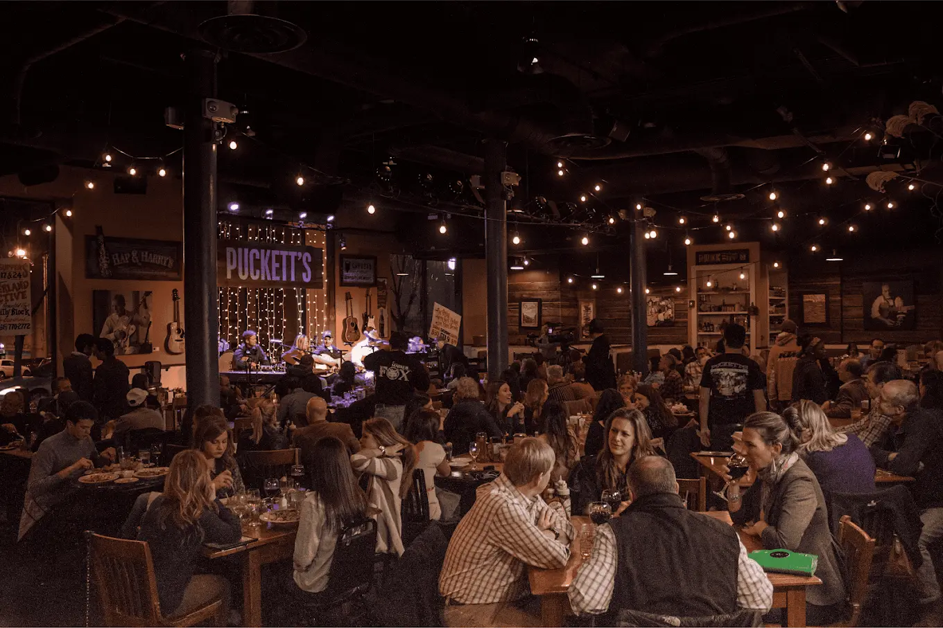At Puckett’s 5th & Church, we offer an authentic taste of Nashville with our signature blend of Southern hospitality, classic comfort food, and vibrant live music. Located in the heart of downtown, our spacious dining room can seat up to 150 guests, making it perfect for both large celebrations and intimate gatherings. For a more private setting, our exclusive event space, Puckett's Backstage, provides an ideal backdrop for your wedding reception, rehearsal dinner, or other special occasions. With a prominent stage for live entertainment and our beloved Southern-style catering, we ensure your wedding is a memorable celebration that captures the heart and soul of Music City.