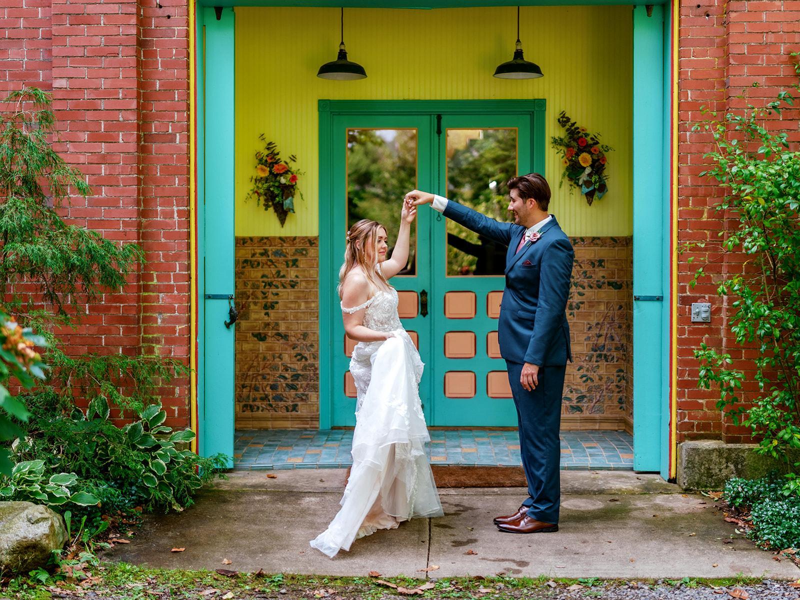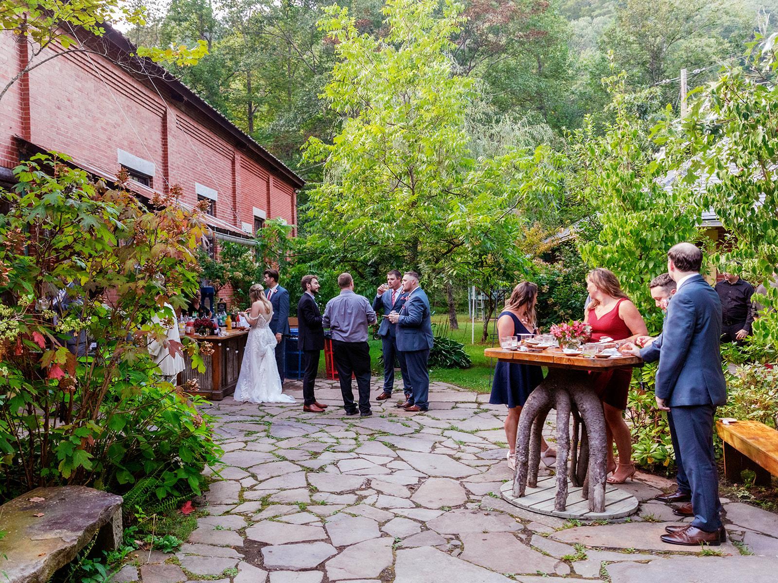 Everything about our wedding at the Pump House was absolutely perfect. We found the Pump House after our original venue was affected by the the hurricane in Asheville, NC. We were rushing to find something that was available on our date, and hit on our non-negotiables: we wanted something where we could spend the day out in nature, have friends and family stay on the property with us, and have a relaxing day all in one location, with a beautiful ceremony site and reception room. As soon as we toured the venue, we knew we didn’t have to look anywhere else. One of the biggest things that sold us on the Pump House was how much the owners, Doug and Lisa, care about their land, the venue, and the weddings that were hosted there. Every space is decorated with Doug’s artwork, from paintings to the tiles in all the bathrooms, which is such a charming touch. They can tell you all about the history of the property and the different types of trees you’ll see as you explore the hiking trails. They’ll even tell you stories of past weddings and couples who have been through their doors as well. Throughout our tour and the whole planning process, we never felt like we were just another wedding or that they were just checking the boxes. On our wedding day, we woke up in our gorgeous accommodations to the relaxing sounds of birds and the river. We got to sit and have an incredible breakfast with our friends and family before getting ready (the breakfast. Omg. I’d book this venue for the breakfast itself). A group went for a hike and a dip in the river that morning too. I felt like we were surrounded by the most positive, magical energy all day as we took our photos in the forrest. We ended up moving our ceremony into the Brick Barn due to rain (fortunately that’s the only time throughout the day it rained, so our guests got to hang outside during the reception), but we ended up having the most intimate, beautiful ceremony in there, that we couldn’t even imagine doing differently now. Plus, the cats and chickens on the property were a big hit with us and the guests :) We’ve had so many people rave to us about how unique and beautiful the venue was. I’m so glad that we found the Pump House, and I’m sure we’ll be planning trips back in the future for anniversaries.