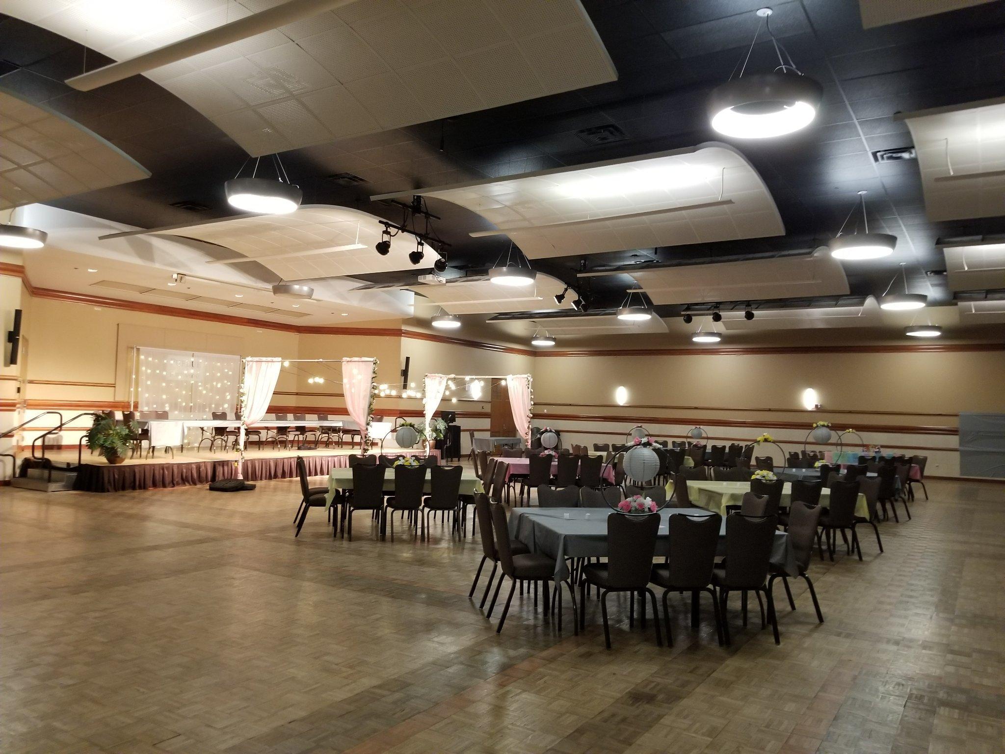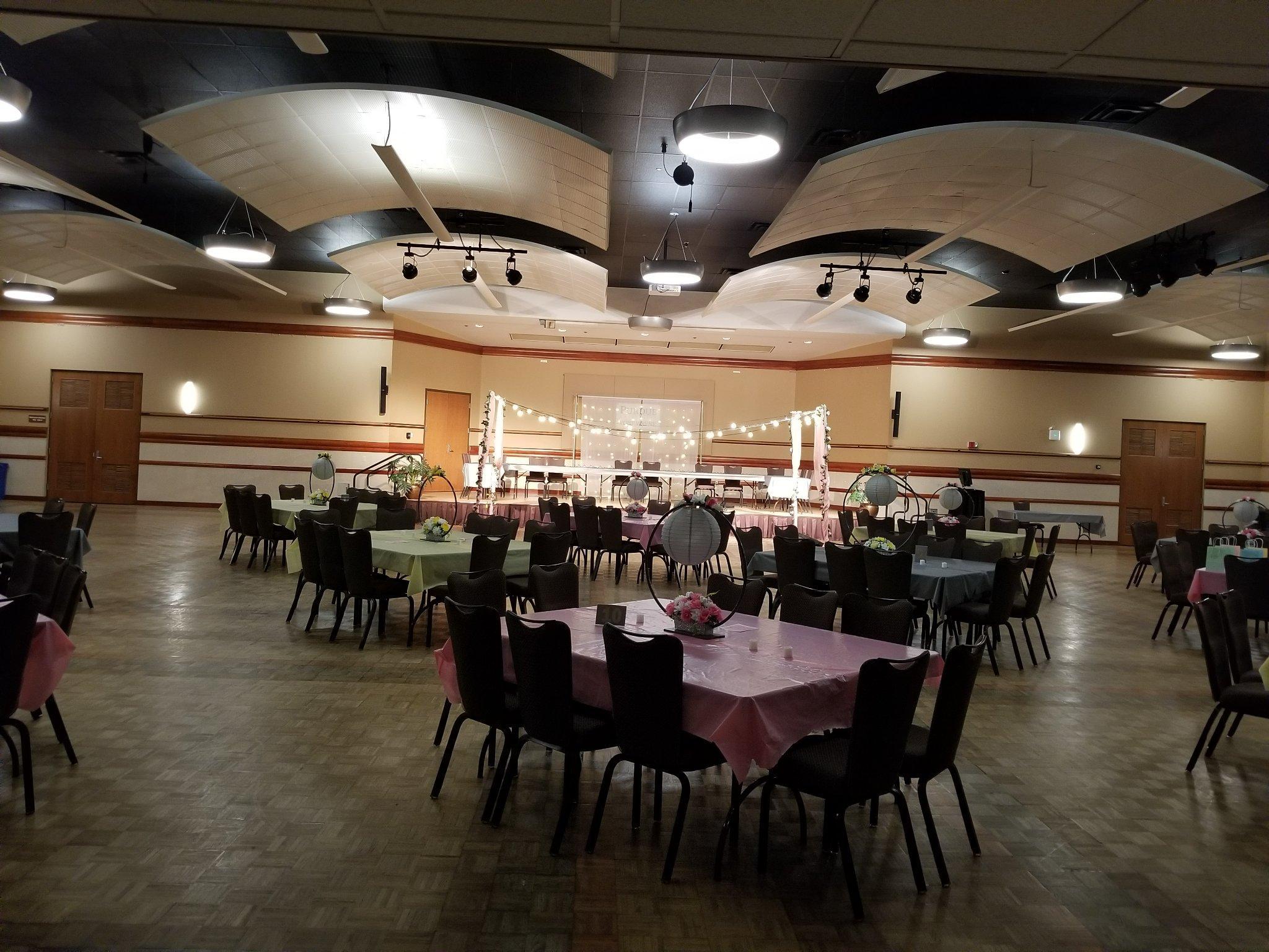 -Carpet flooring -Projectors and screens -Tables and chairs -Option for a stage -Catering prep kitchen for additional fee