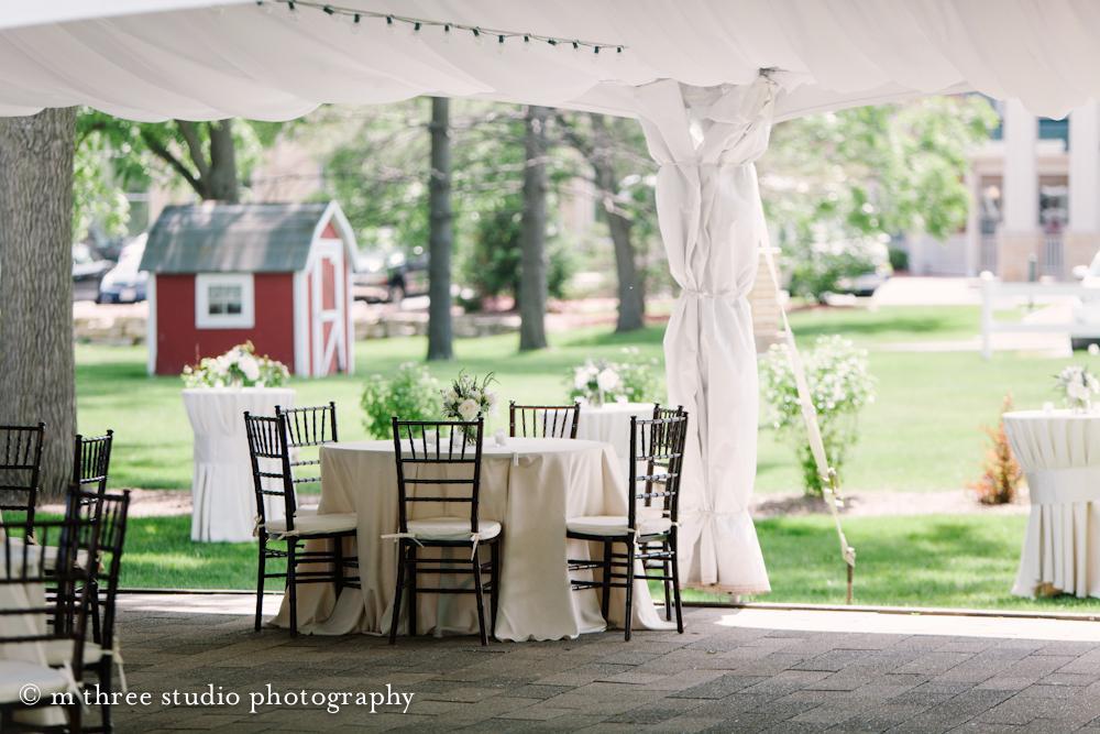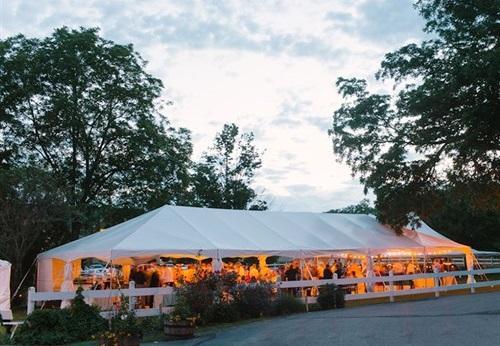 Use of all outdoor grounds Reception Tent with sides, lighting, and electrical outlets Free Parking, Access to Bathrooms China and Flatware Drinkware, Staffing, Cake Cutting/Dessert Service Insurance, Alcohol License, Licensed Kitchens Rustic Outdoor Bar, Wood Beer Banquet Wrought Iron Cocktail Tables and Chairs Additional Seating - White Picnic Tables (generally placed on lawn for guest seating) Skirted Tables for Head Table, Gift, Place Cards, Cake, & DJ Historic Setting