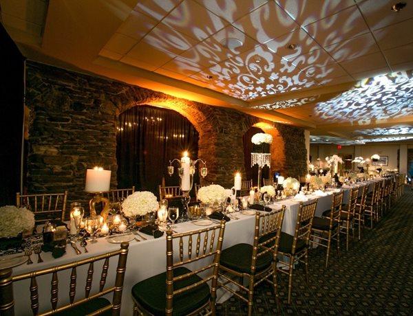 Our Main Dining Room contains a wonderful mixture of historic attributes and modern amenities. Enjoy cocktails on our spectacular stone terrace and elegant mahogany bar, dine among 100 year old stone archways, and dance the night away under the stars.