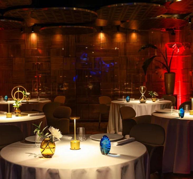 An elegant fine dining experience blending French and Italian cuisine in a luxurious setting, and private events.