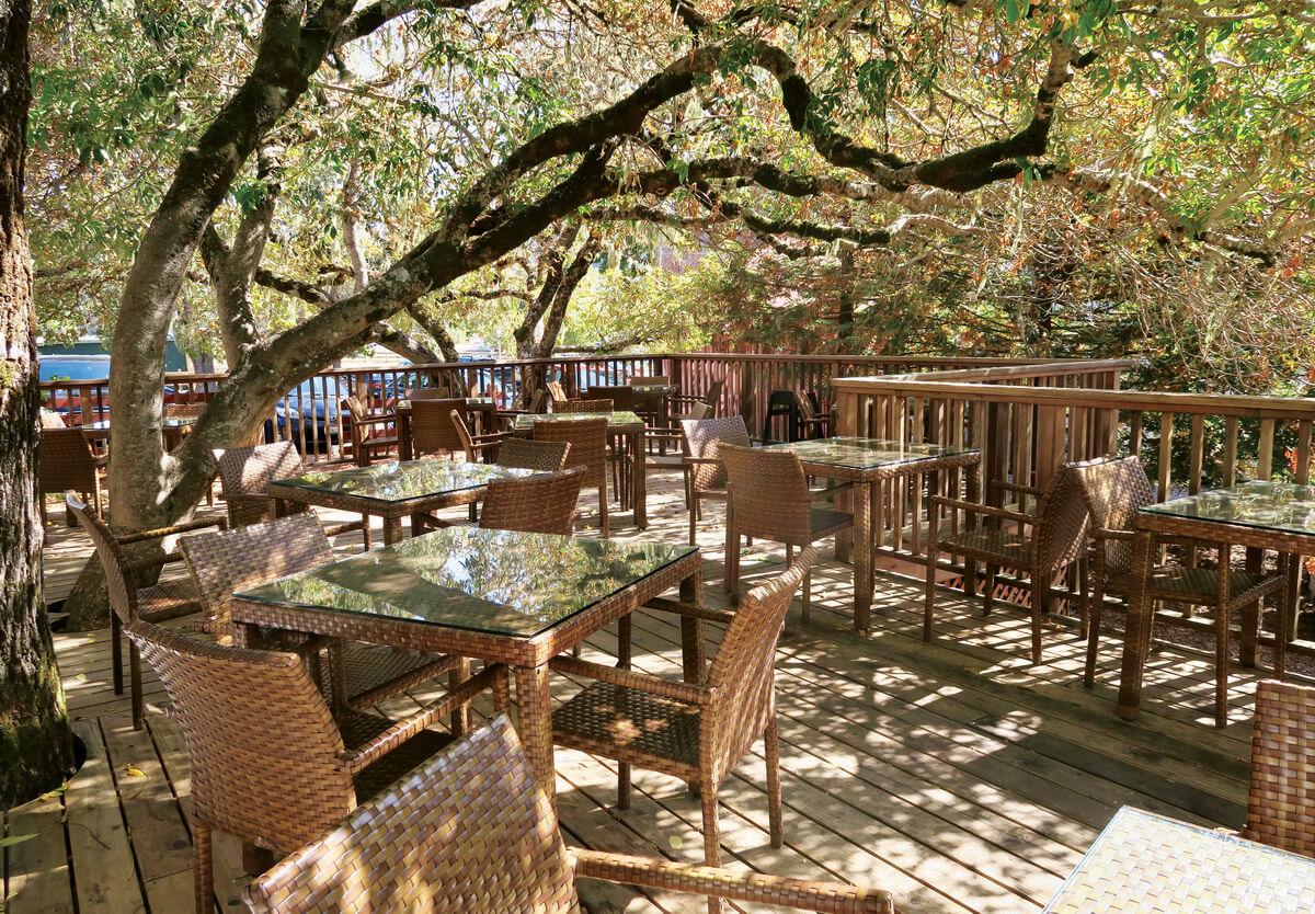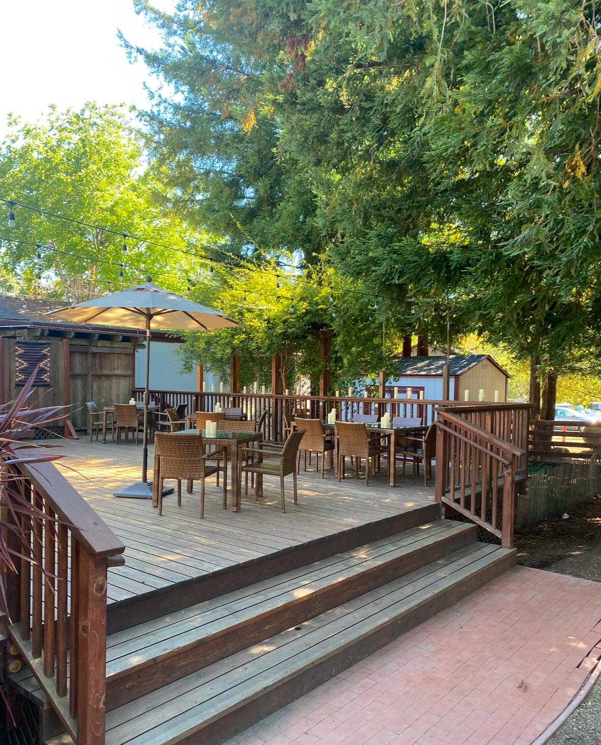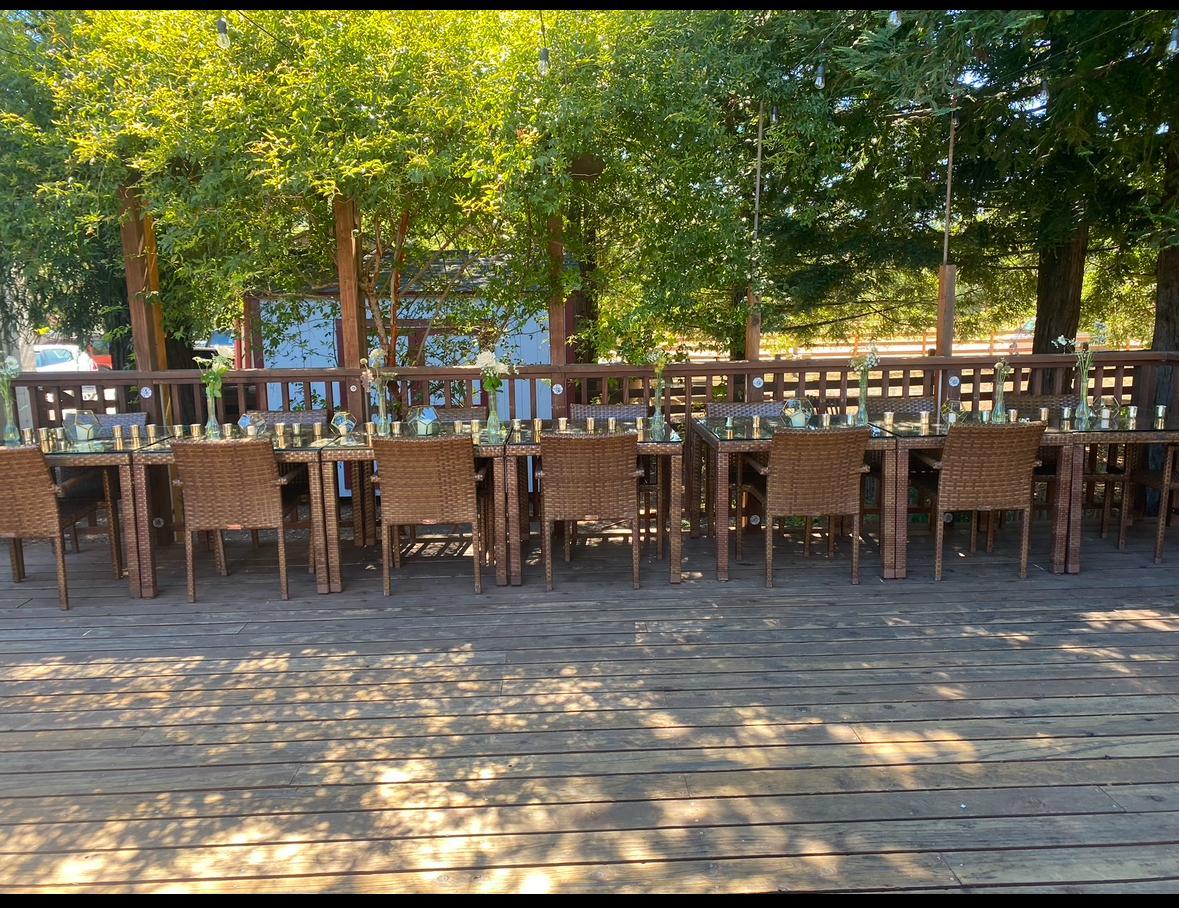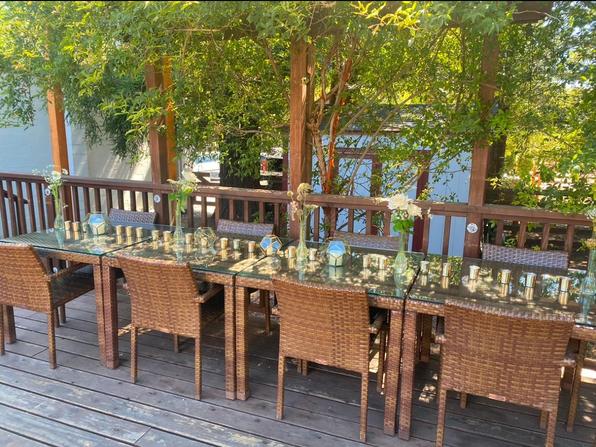 A private sheltered deck nestled within the trees is a perfect location for an open-air event. (Can be rented alone or in addition to the Western Room)