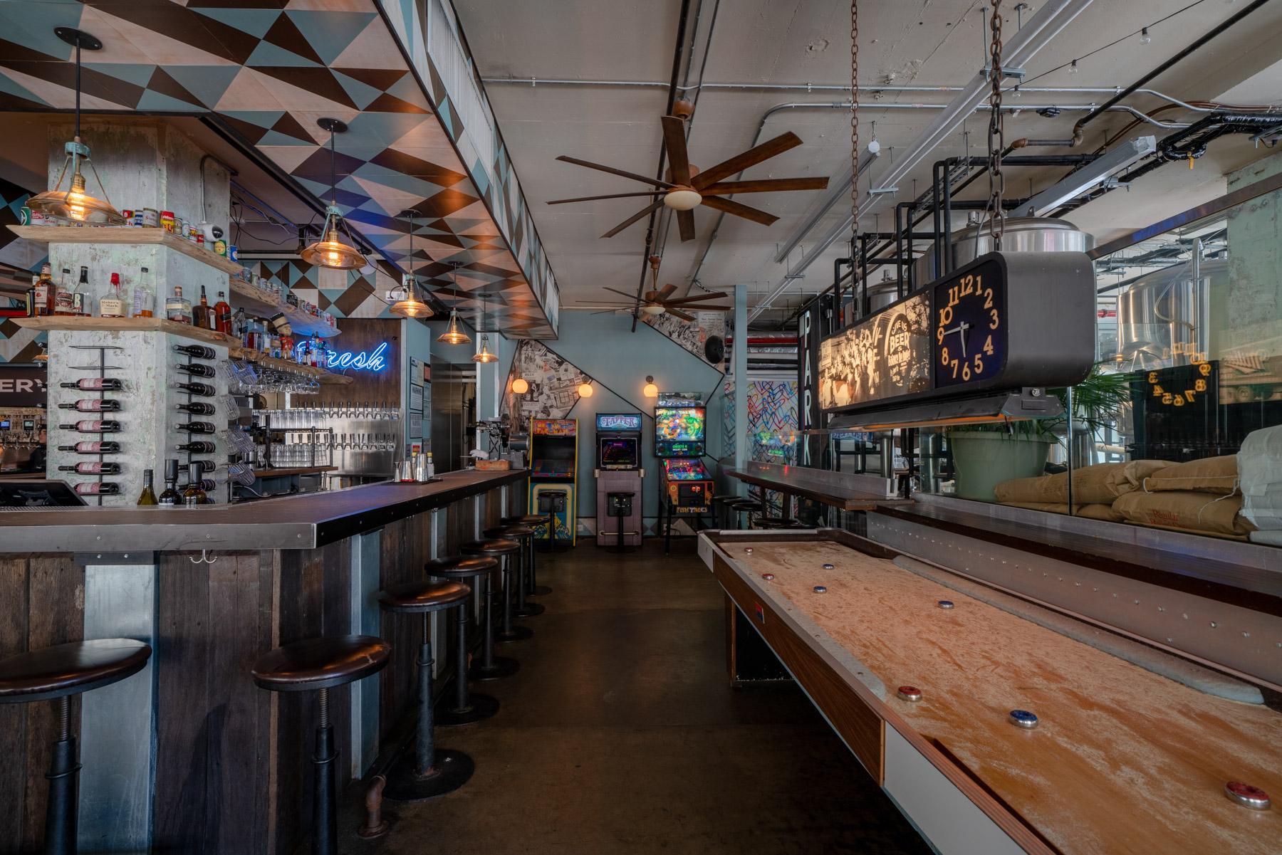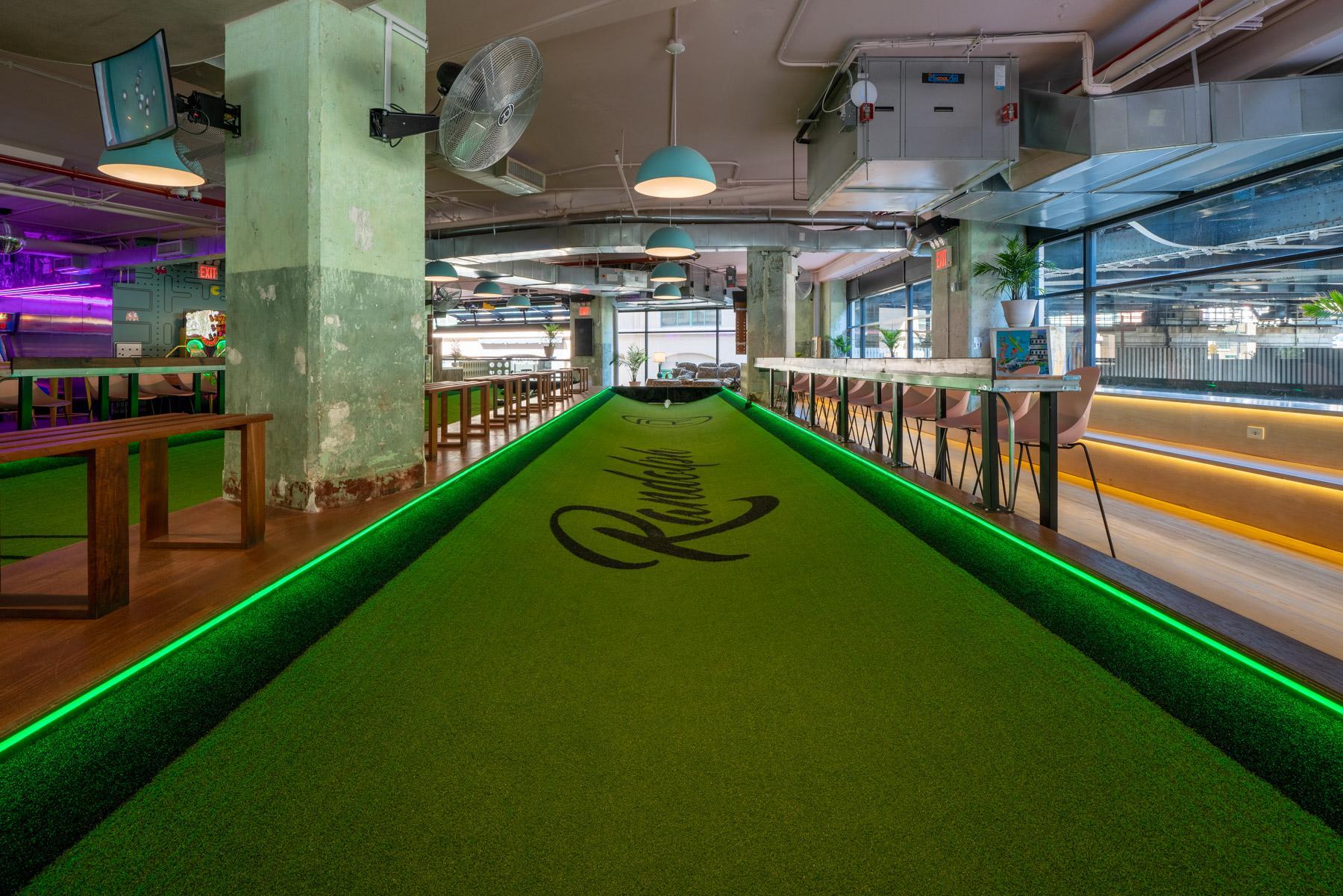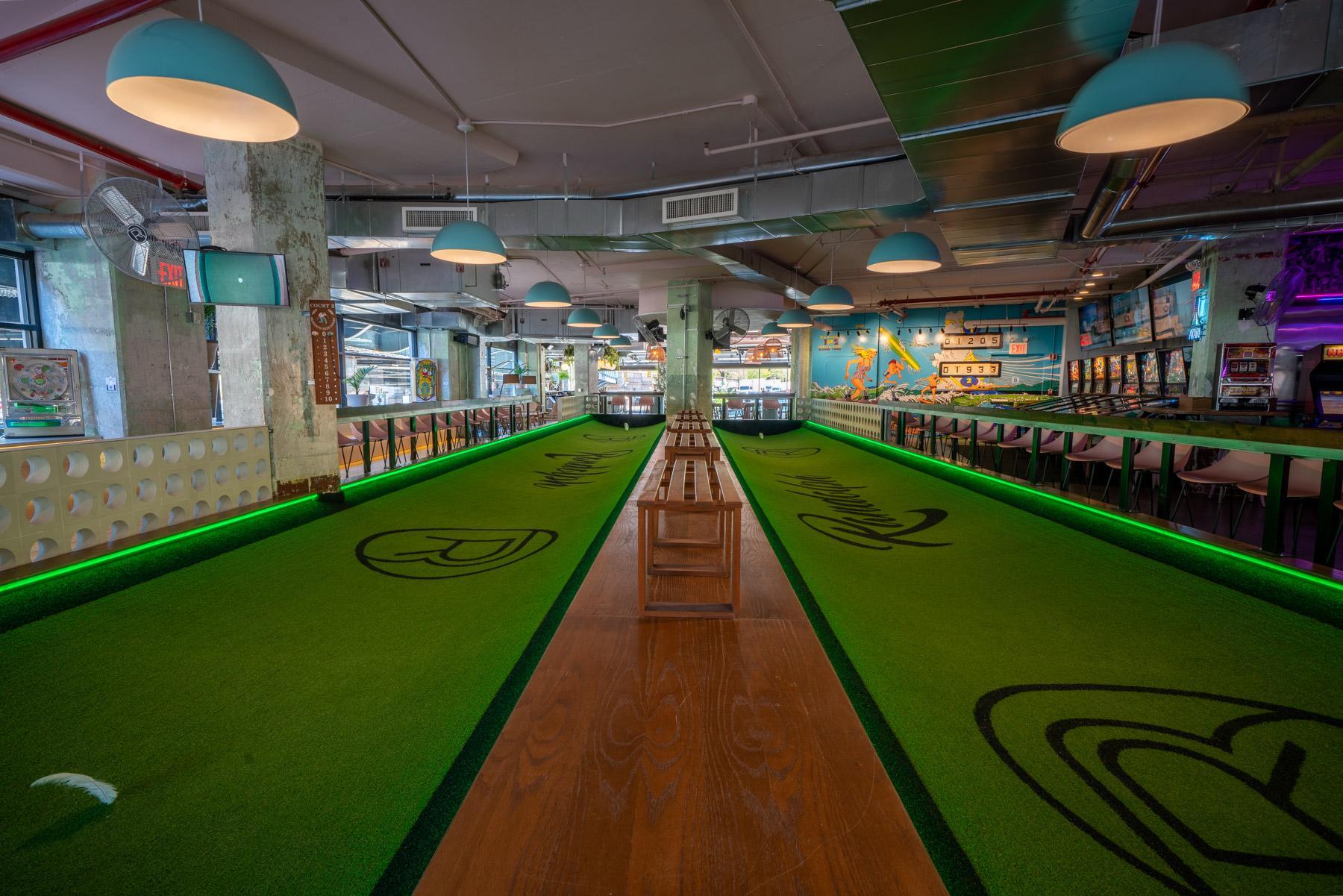 13K SqFt event space with a self-serve beer wall, classic arcade games, pinball, skeeball, shuffleboard and of course, NYC’s only Belgian feather bowling courts! Tons of space + nooks galore, chef driven hors d'oeuvres, 2 full bars for cocktails, wine, and house brews + ample outdoor space weather permitting. The venue is divided into 2 halves that each have unique vibes and amenities. When you book the whole venue you get it all (& for certain events it is possible to incorporate the rooftop!)