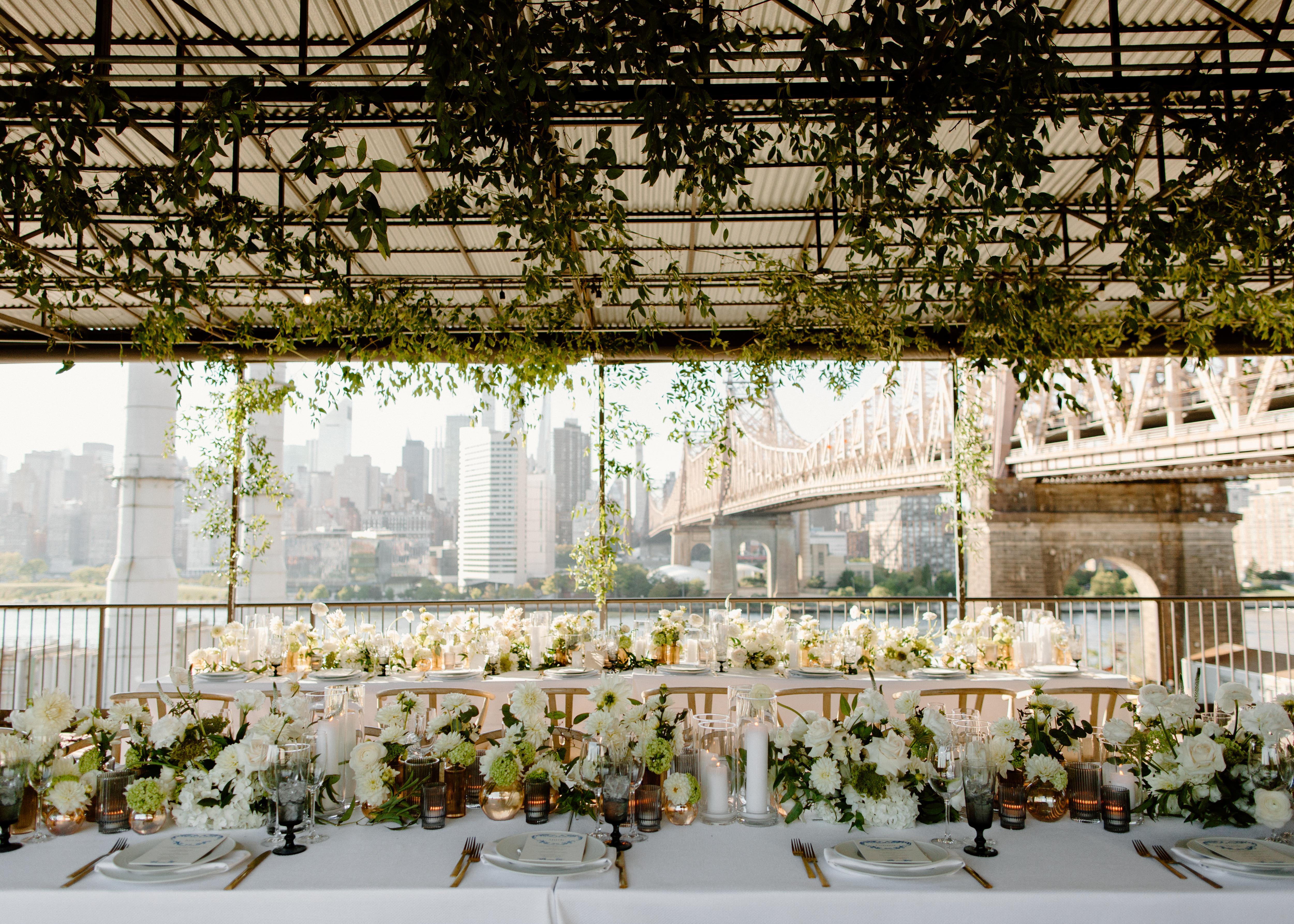 Located on the 6th floor of the Ravel Hotel, our adored Penthouse has been Long Island City's only climate-controlled retractable rooftop, allowing us to host wedding receptions and cocktail parties all year round. The Penthouse overlooks the East River and offers panoramic views of the NYC skyline and 59th Street Bridge.