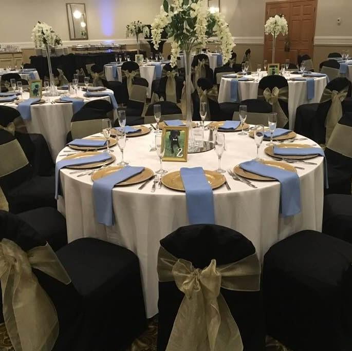 • 5 Hours • Experienced Staff, Sales Manager, & Event Captain; Full Set-Up & Tear Down Tables, Chairs, and Linens with Choice of Napkin Color • Professional Gift Card Box, Cake Cutting Services, China & Glass Plates; Stainless Flatware