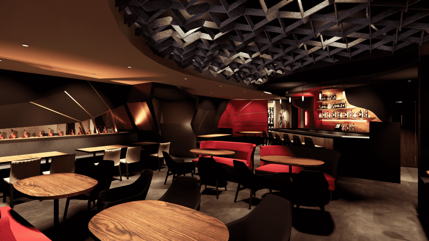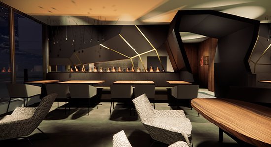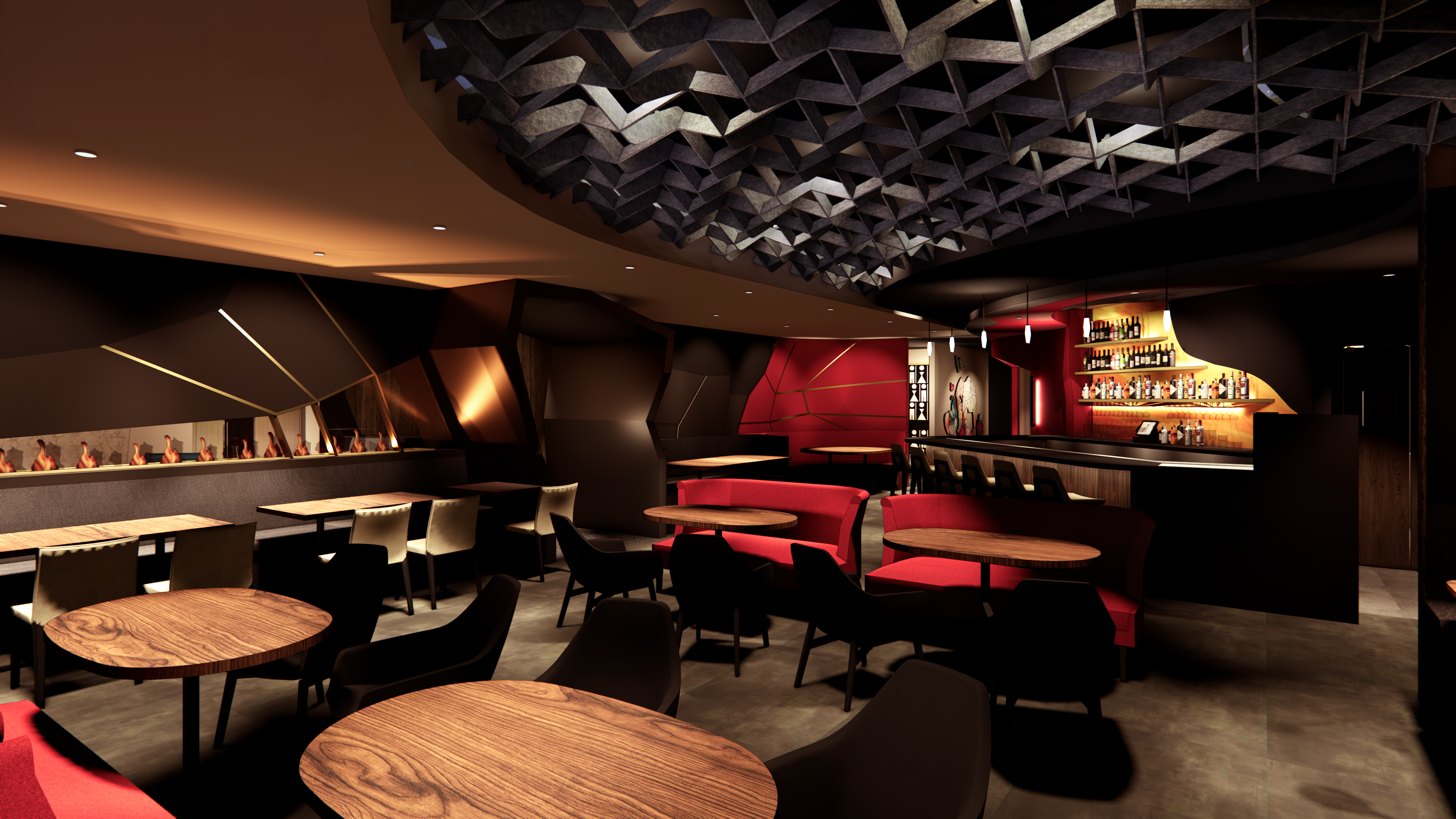 Our chic Ember lounge venue sets the perfect ambiance. With plush seating, a private bar, and striking fire elements throughout the decor.