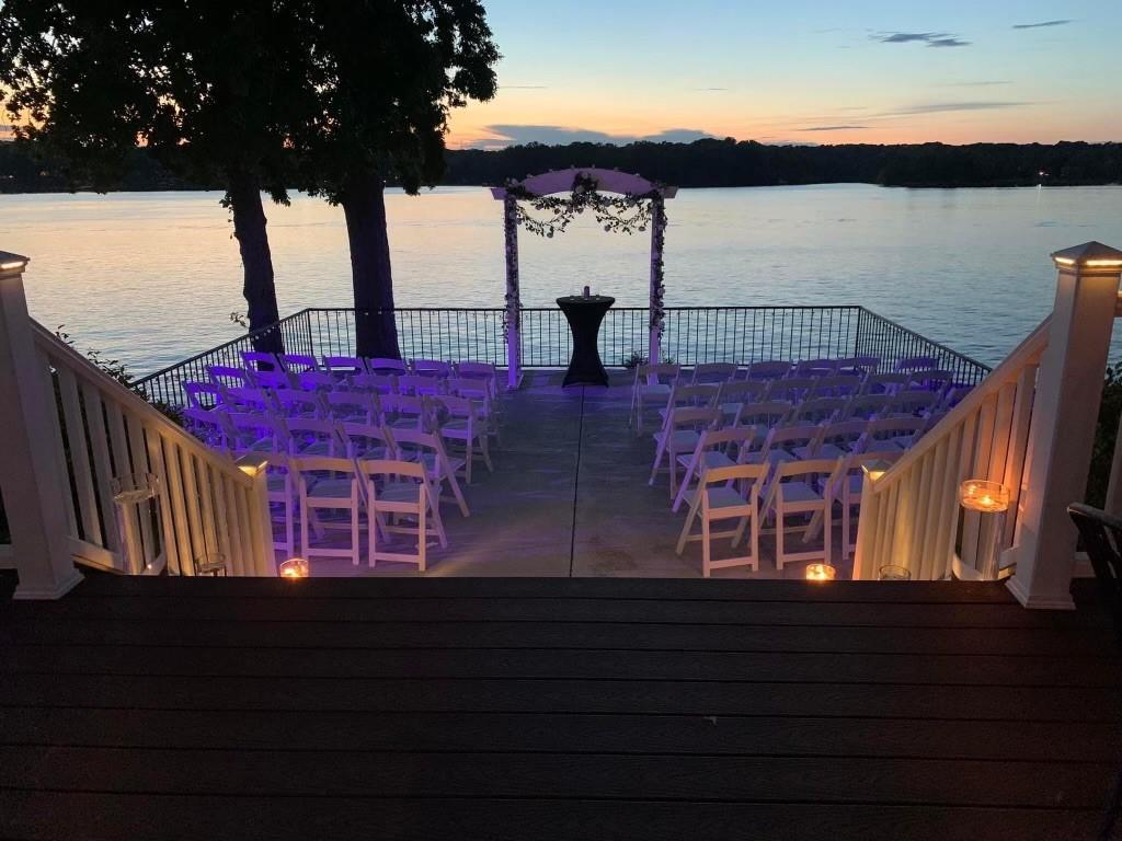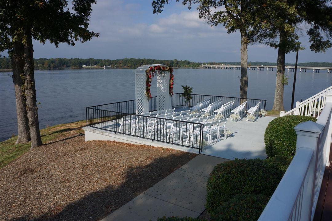 The clubhouse faces west overlooking one of the most beautiful sections of Lake Wylie, especially at sunset. Highlighted by an outdoor wedding patio, the clubhouse has a wraparound porch, ball room that features a large fireplace, a large dining room with a side dining area, a separate cocktail lounge with serving access to the side dining area, and low-level mood lighting.