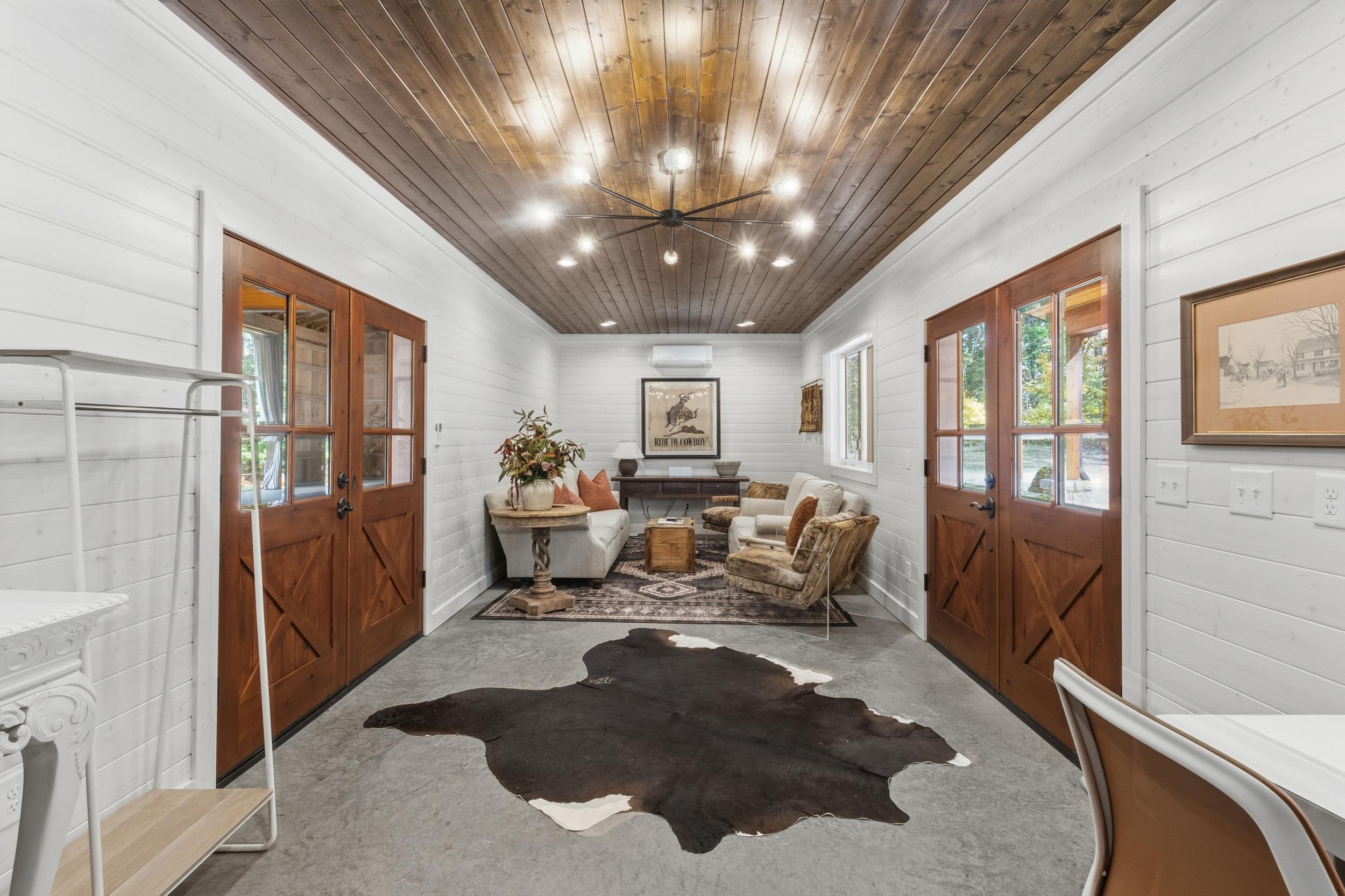 The barn office is a newly reimagined, climate-controlled space designed to function as both a refined holding room and an additional photoshoot location. Repainted in a deep navy charcoal tone, it offers a moody, editorial backdrop that photographs beautifully. Ideal for event holding, talent prep, wardrobe changes, or intimate shoots, the room provides privacy, flexibility, and a calm place to reset throughout the day.