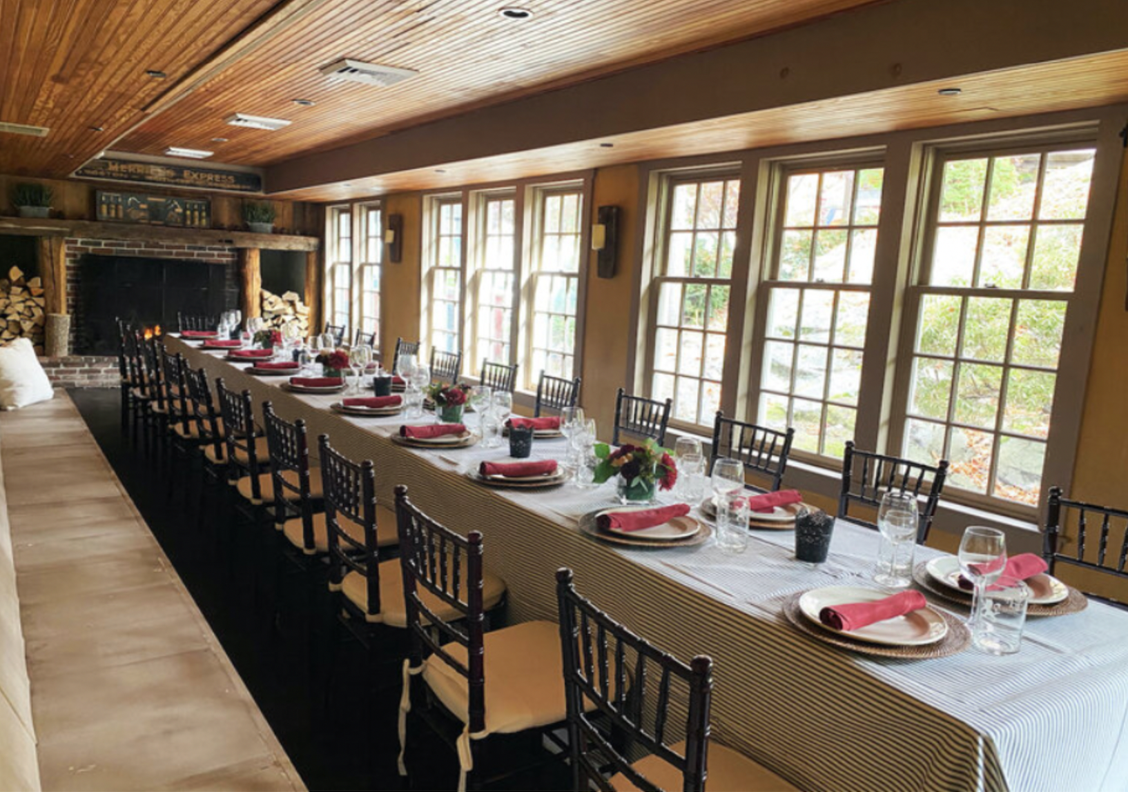 Located inside the Red Lion Tavern, this private dining room is the best for intimate rehearsal dinners and corporate luncheons. With it's wood burning fireplace, the space is always inviting and warm.