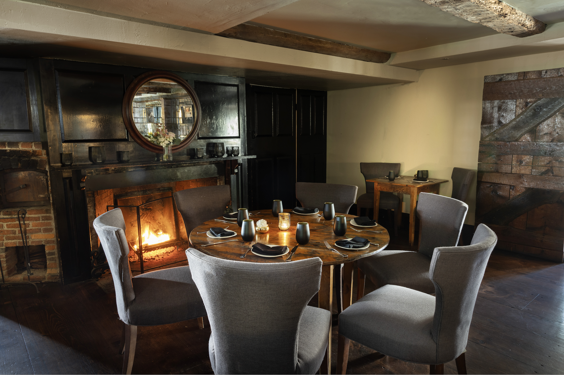 Enjoy your elegant cuisine fireside and cozy.