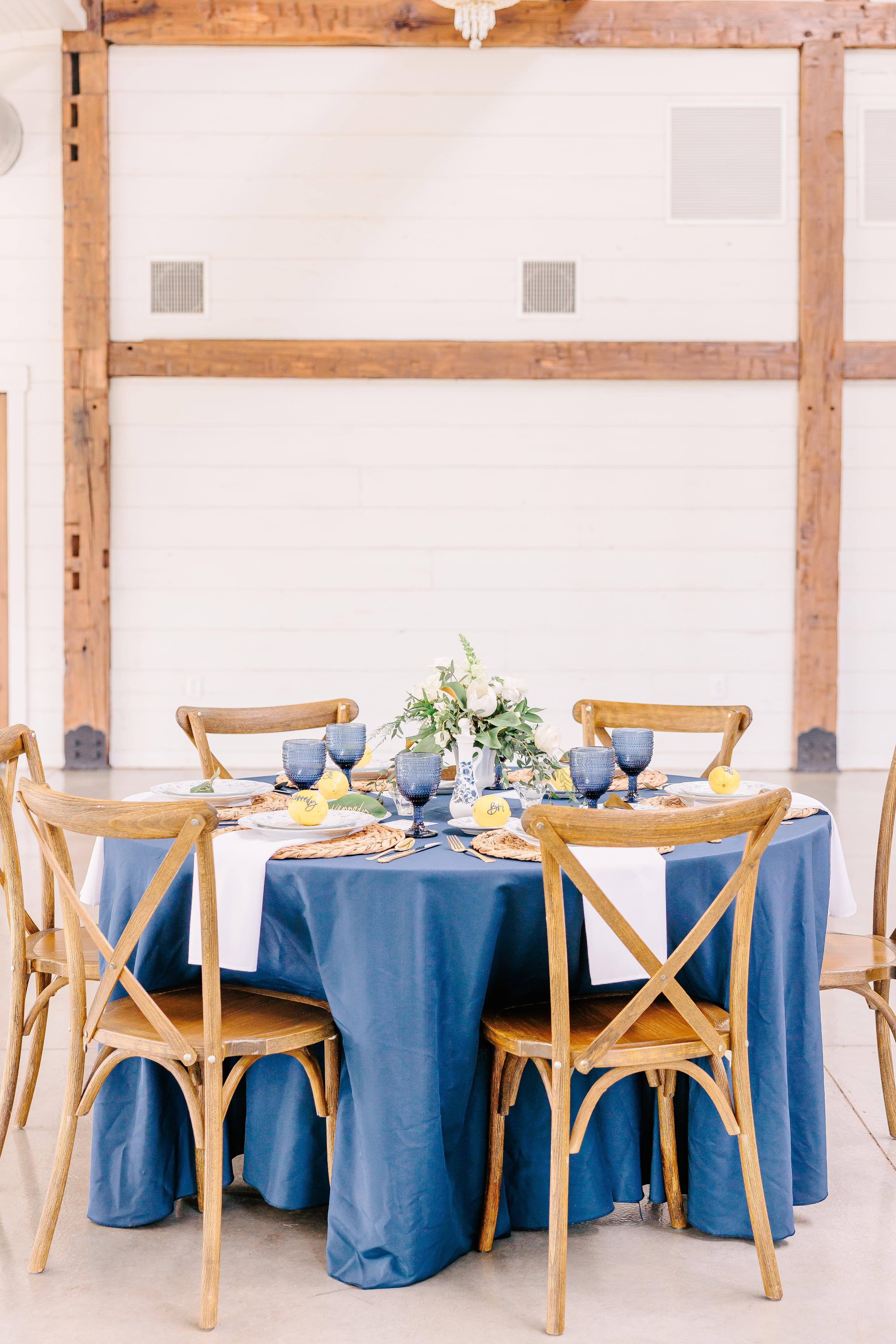- Tables, chairs, and linens