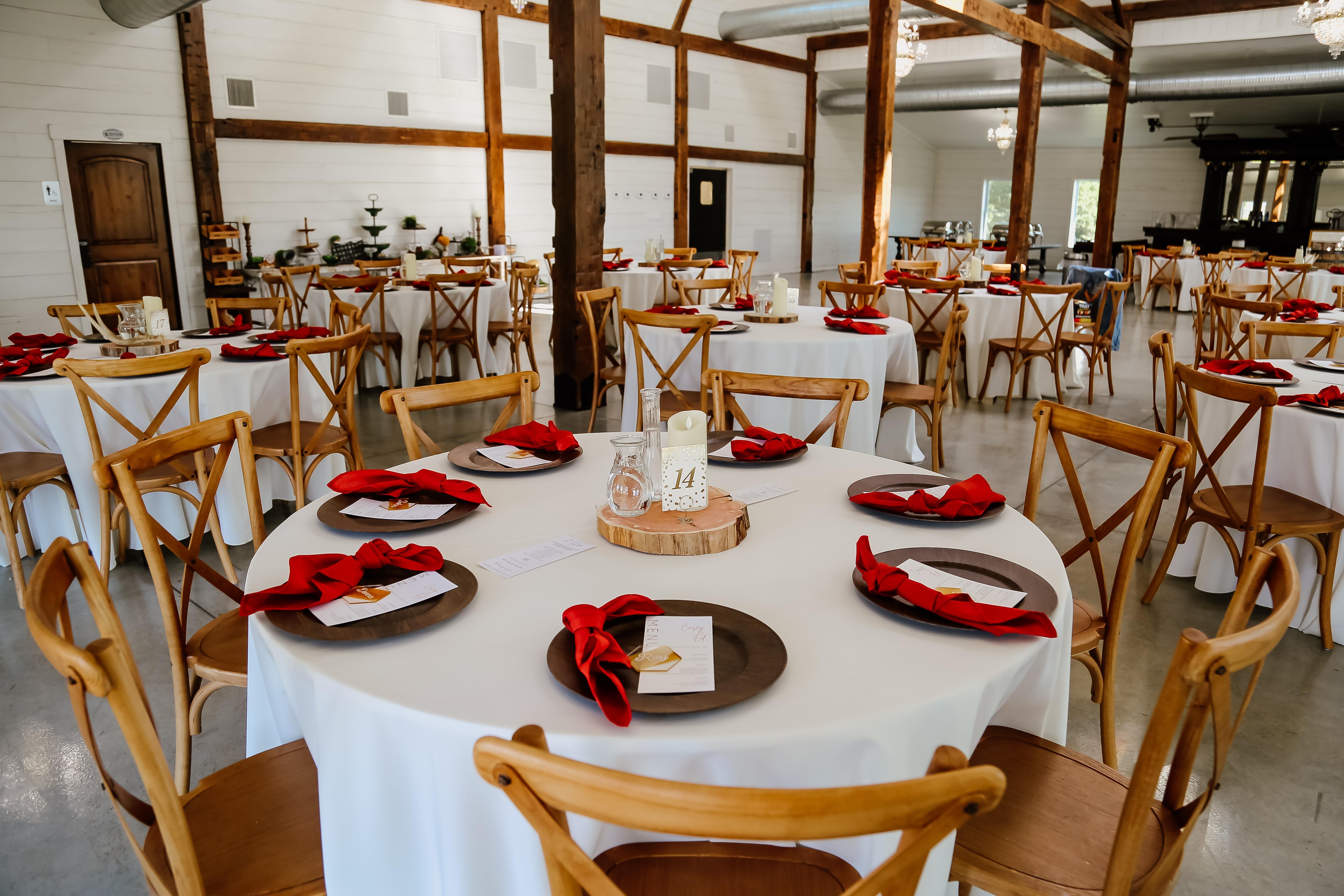 When you choose Red Oak Valley’s Rustic Red Barn for your wedding venue, you get 9000 square feet of fabulous farm wedding feels ready to accommodate 200 guests, featuring gorgeous wood walls, elegant lighting, and all the space your guests could need.
