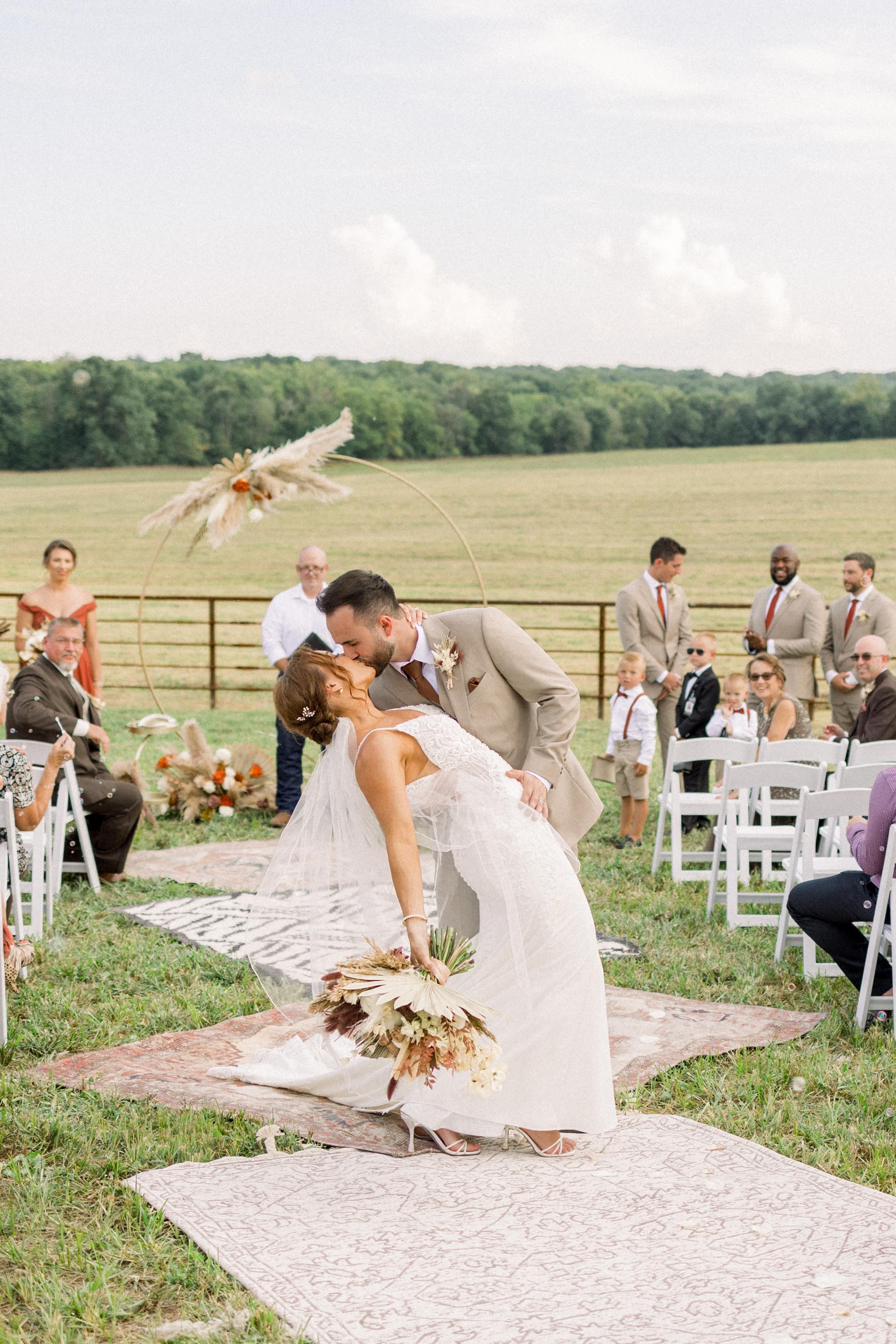A Red Barn wedding weekend includes exclusive venue access from Friday through Sunday, with overnight lodging for the wedding party at the Farm House both nights. You'll enjoy access to indoor and outdoor ceremony spaces, tables, chairs, linens, getting-ready suites, and our Borrow Boutique for décor. It’s a warm, rustic setting perfect for up to 175 guests and a relaxed celebration. Please note: Catering and bar services are not included.