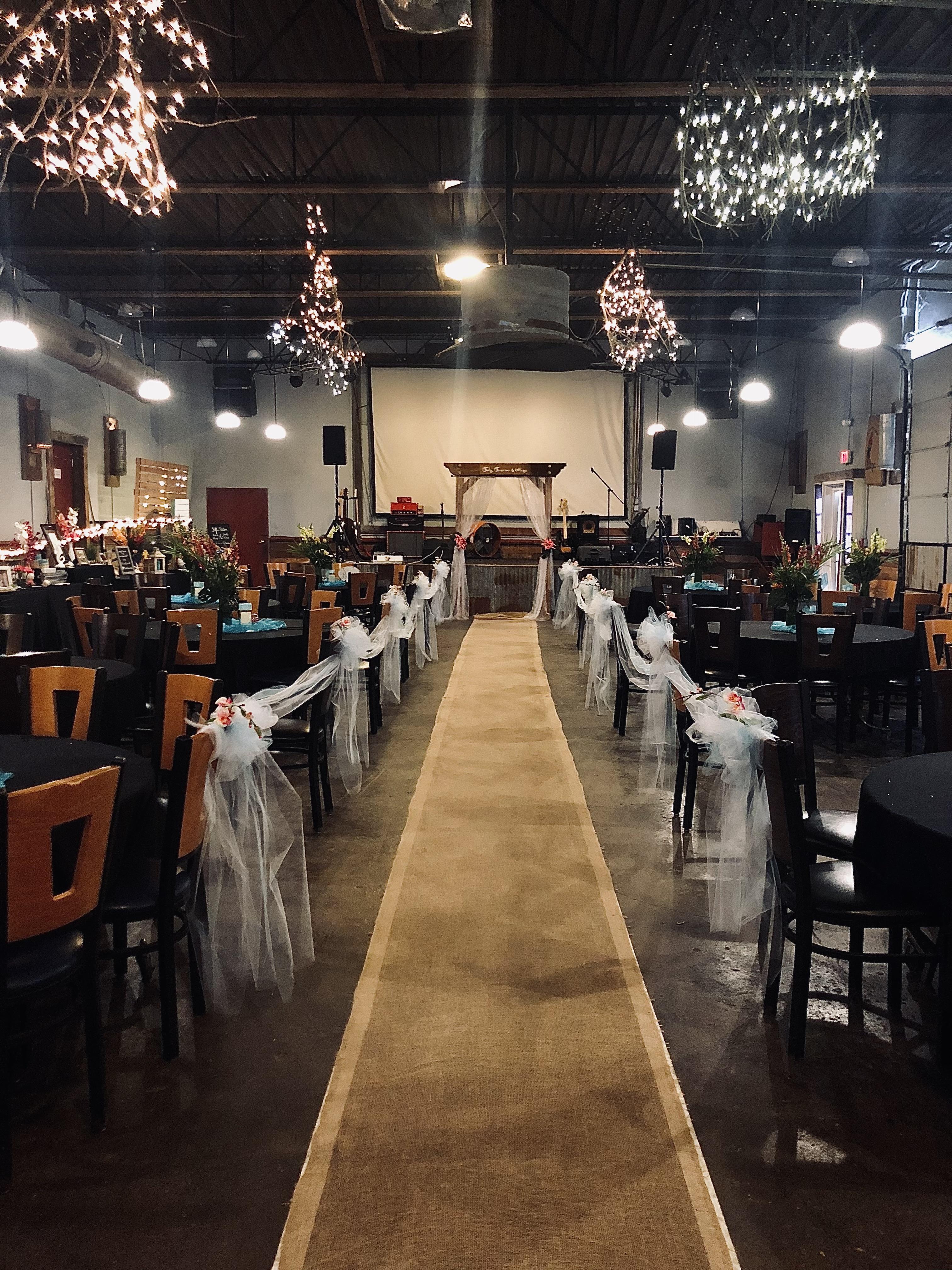 Every little girl dreams of walking down the long church aisle in their beautiful white dress. Our new addition allows you to have your traditional ceremony in The Chapel and have your funky reception in one facility. Now you can have your cake and eat it too! Add your special touch with the addition of flowers, greenery, or draping of the church pews. It is your day and we are here to make sure it is picture-perfect.