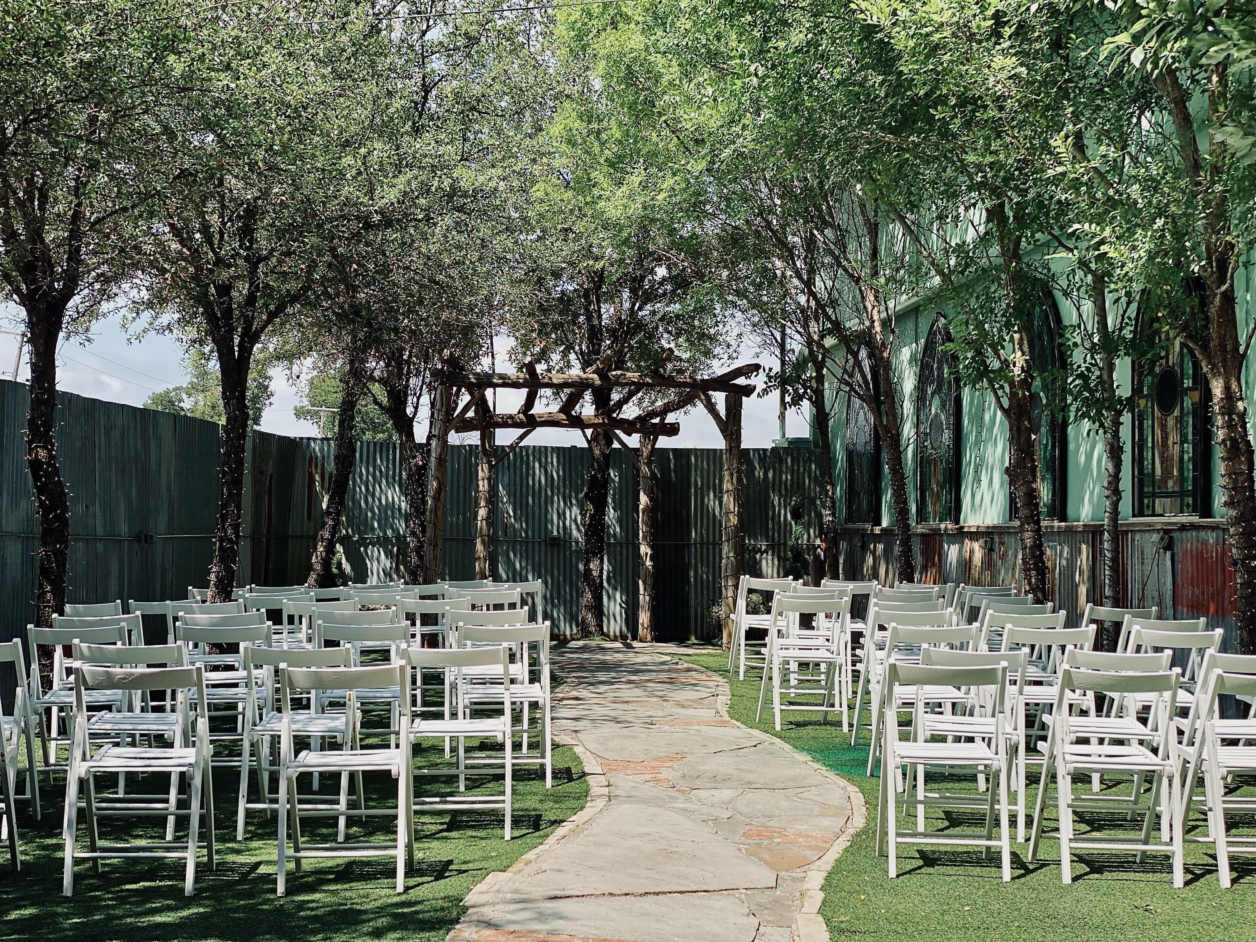 Dreaming of having your ceremony outdoors under the Texas stars? The quaint cedar post arbor is the perfect backdrop for your vows as it twinkles at night. Guests line the flagstone path for your grand entrance as you step towards happily ever after. You also have the flexibility of adding flowers, greenery or draping the arbor with fabric. It is your day and we are here to make sure it is picture-perfect.