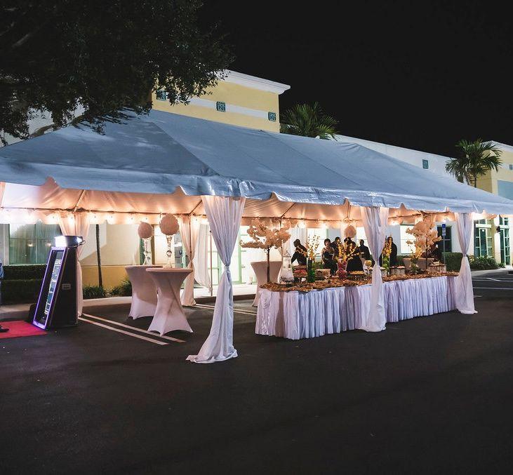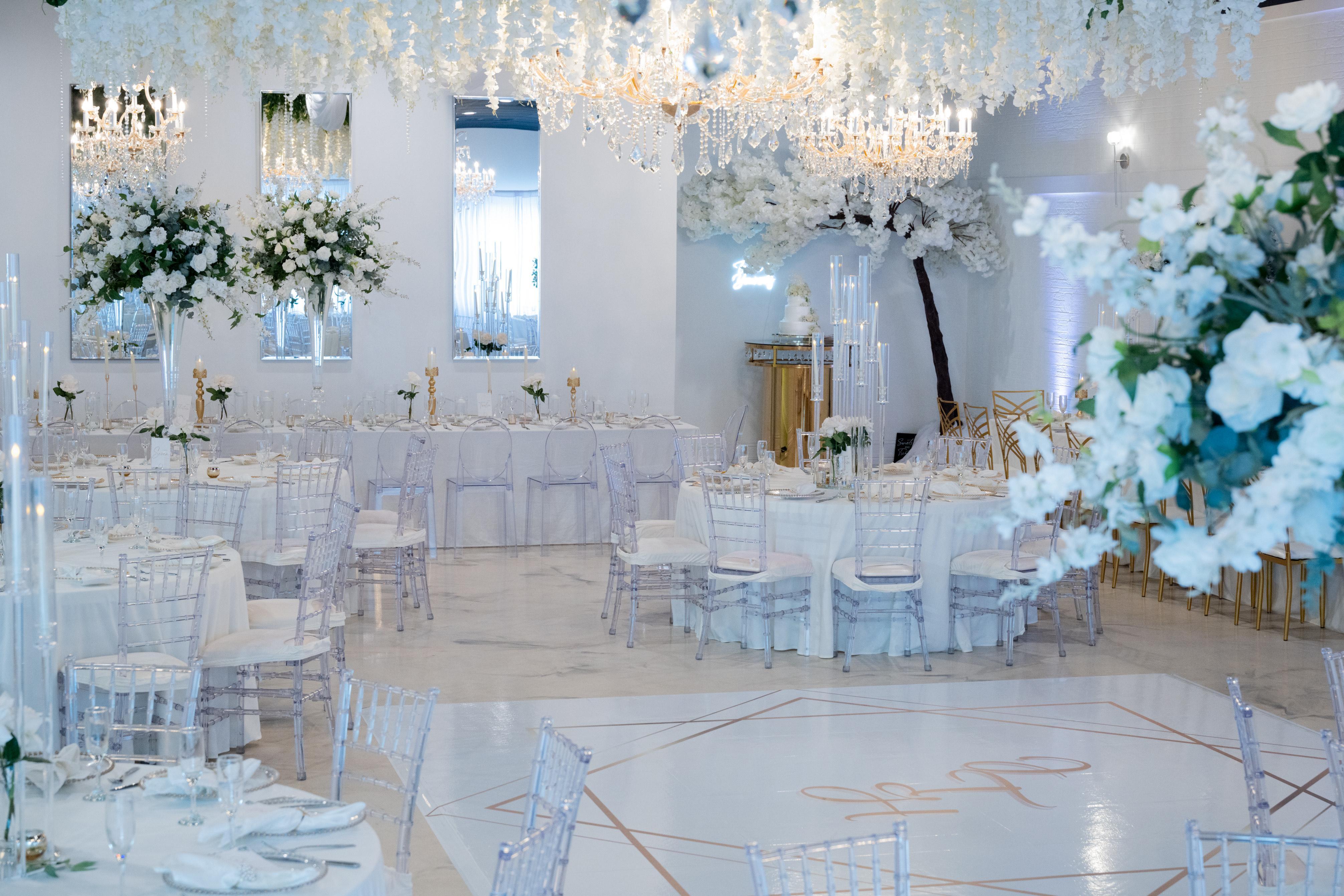 In Florida, the weather can be unpredictable. Regal Event Hall is an all indoor venue that can host your ceremony, cocktail and reception. Also amazing outdoor photo options with a less than 5 minute drive away. If you love high ceilings, fully white draped, white marble floors, XL chandeliers modern all white then Regal is the venue of your dreams!